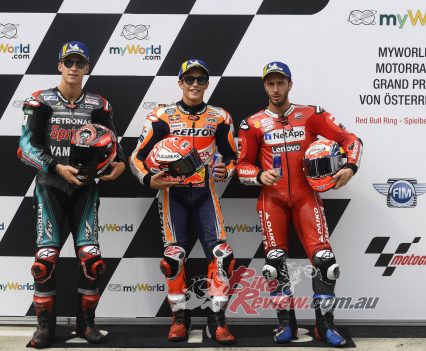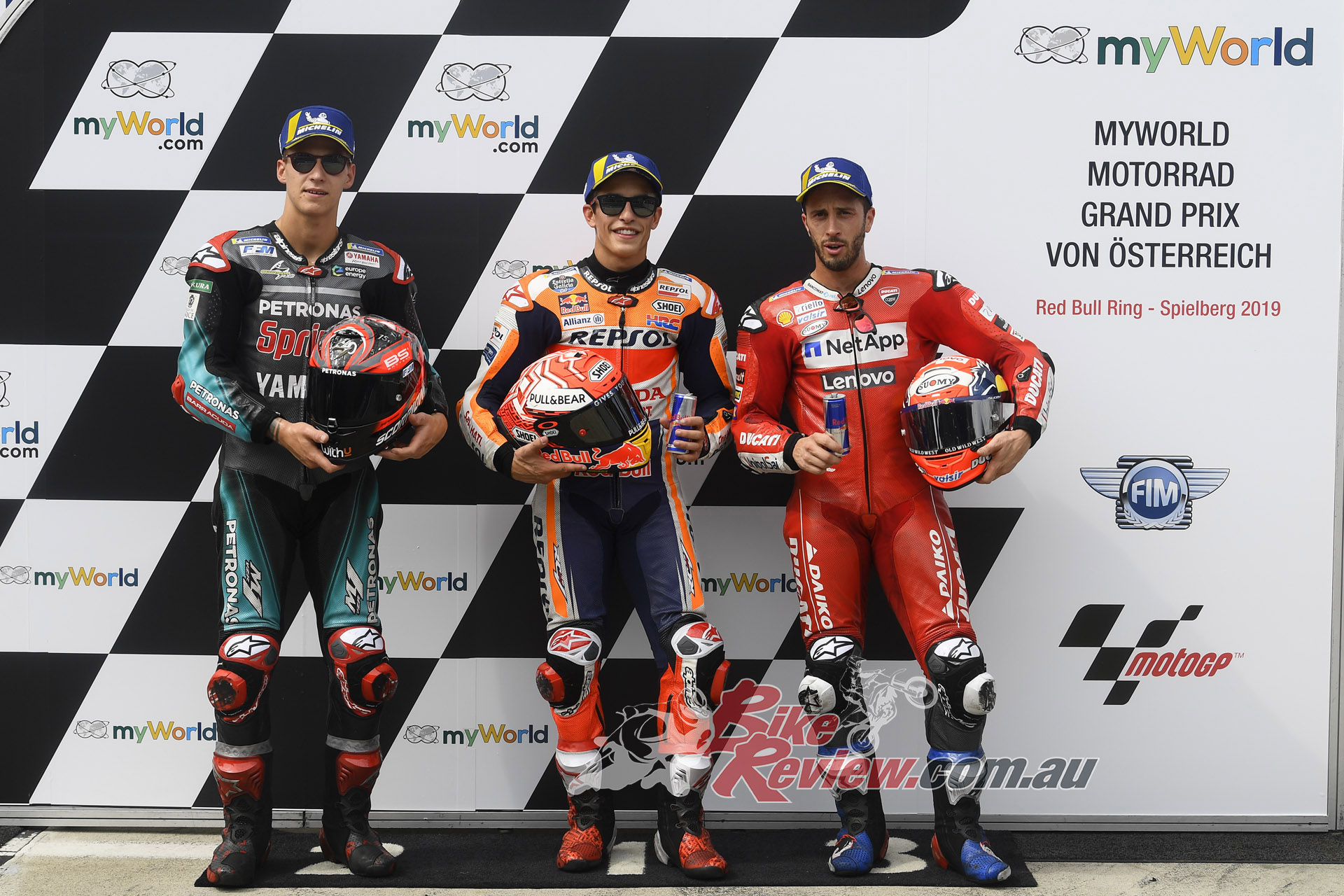 Alex Rins Andrea Dovisioso Brad Binder Cal Crutchlow Danilo Petrucci Fabio Quartararo Marc Marquez Maveric VInales MotoGP Red Bull Ring Romano Fenati Takaaki Nakagami Valentino Rossi