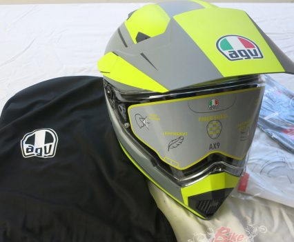 Tony ‘Pommie’ Wilding will be putting a new AGV AX9 lid to the test, not only with his adventure riding but also on his custom bikes as it is a pretty cool looking lid…
