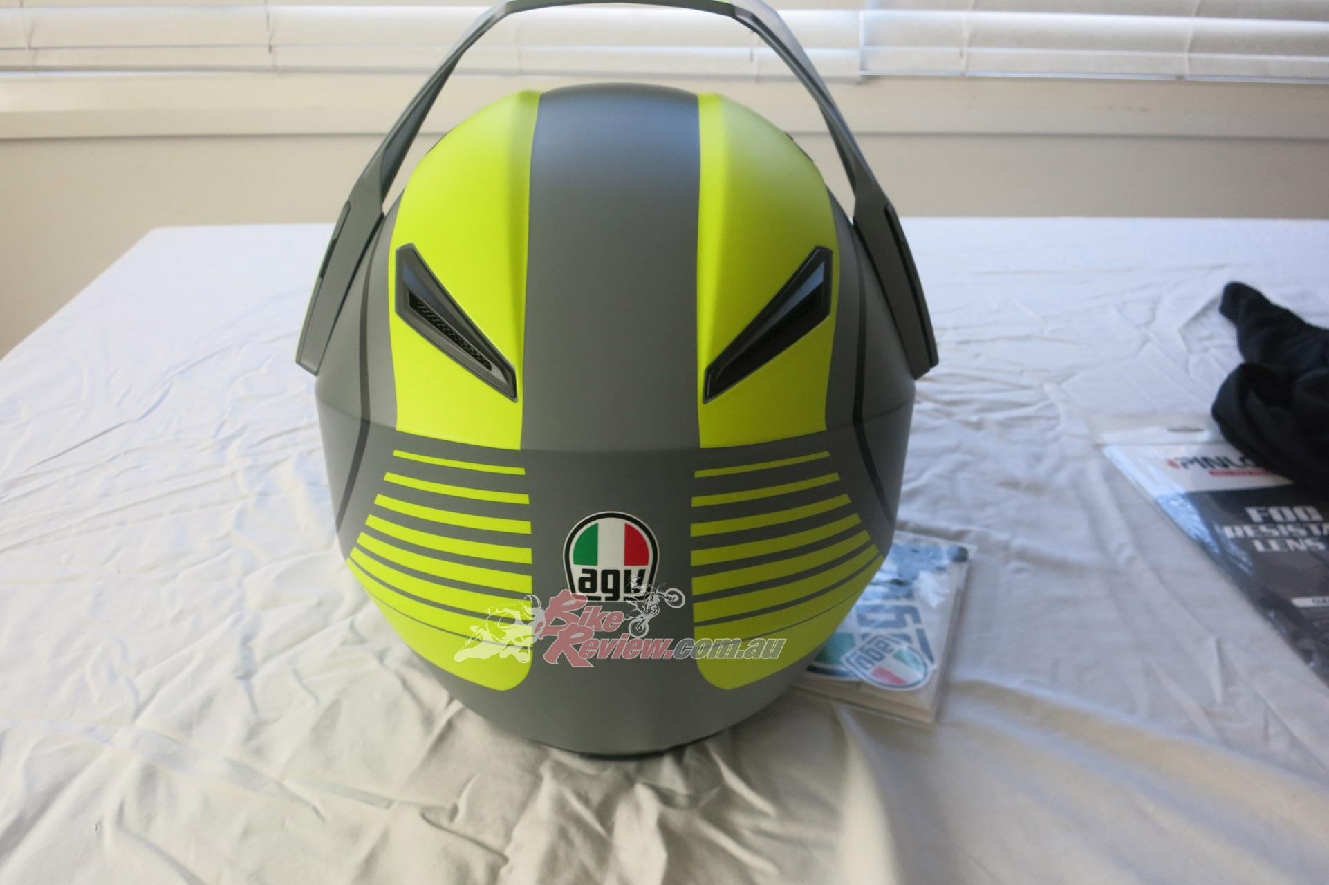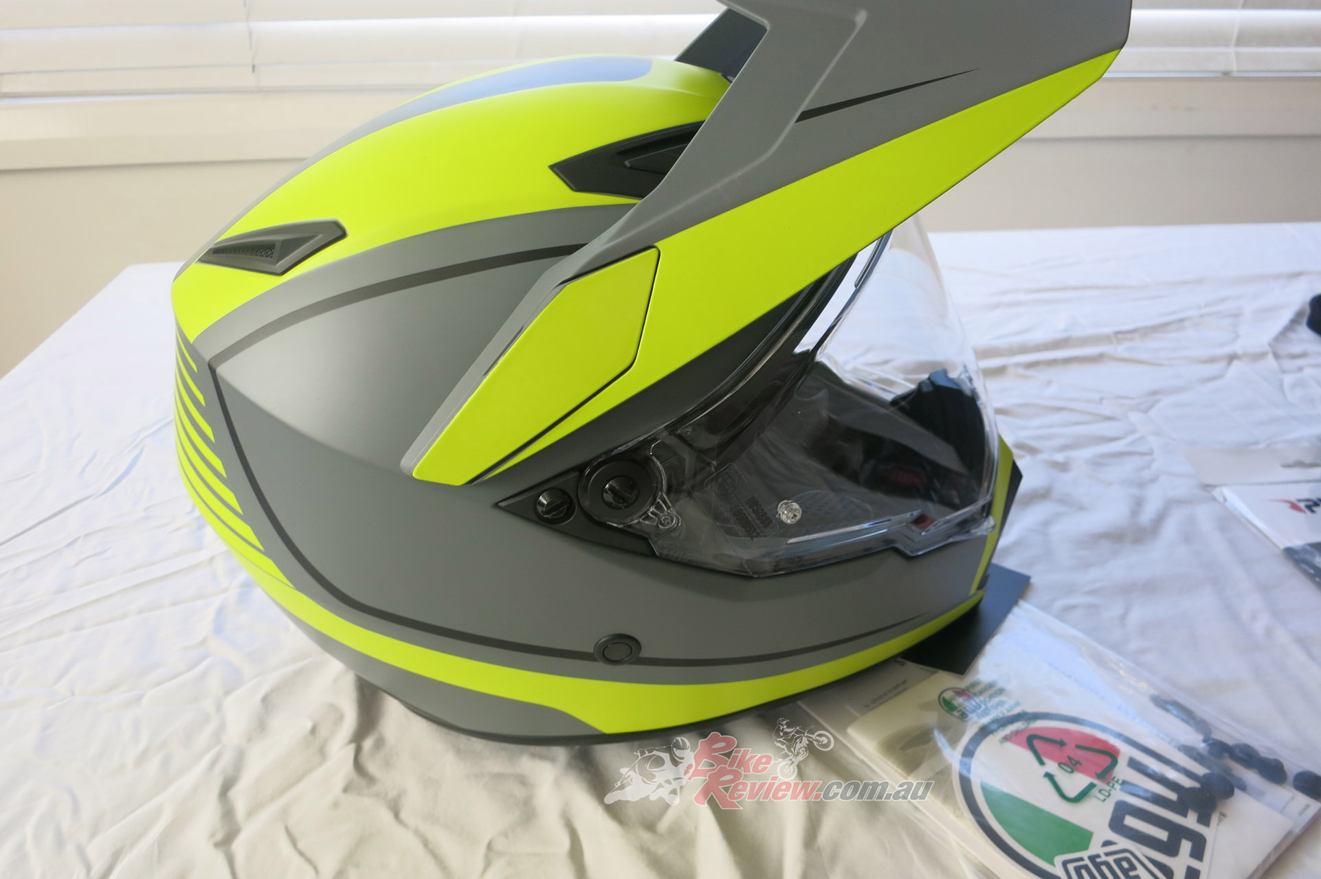 AGV AX9 in Matt Grey Yellow Fluro Black RRP $799 – the new Adventure Touring lid from AGV, the AX9 is a versatile helmet designed for long distances, comfort and ventilation during adventure touring. With four different configurations possible, visibility is fantastic. The lid only weighs 1445grams and comes in a wide range of colours and a carbon-fibre option. Stay tuned for a full review and updates.
