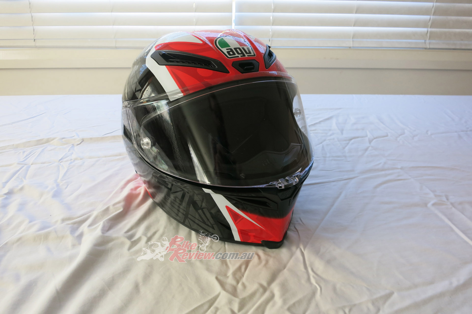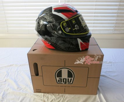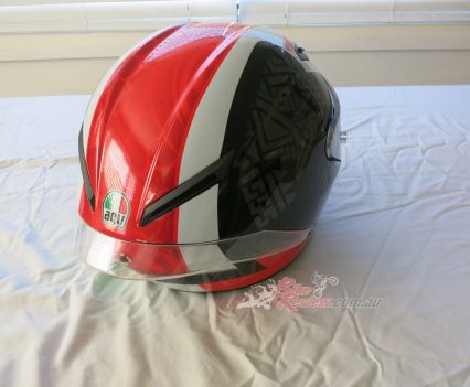 AGV Corsa R Casanova Black/Red RRP $1199 – is a top level track helmet for the serious sportsbike rider. The Corsa R features a carbon-aramidic-fiberglass shell, and offers a long list of amazing features for the most experienced and demanding riders including 5-density EPS structure in four sizes, aerodynamic shape, IVS system with five vents and two extractors, internal chin channels, class optic 1 visor, patented visorlock system and double D ring chin strap. Stand by for a full review.
