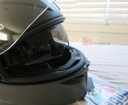 AGV K5-S helmet Matt Black $549 RRP is a premium sport helmet that now features a new construction for the inner liner, designed with high-performance fabrics and with no stitching in sensitive areas, making for an extremely comfortable fit. The lightweight shell is made from a carbon-fiberglass mix, while stability and aerodynamic performance are maximized thanks to an incorporated spoiler. The Integrated Ventilation System (IVS) has vents that are hollowed into the shell, and there’s also an internal drop-down sun visor, a removable nose guard and a new wind protector that keeps noise to a minimum. John Arens will be touring Australia in this lid so stay tuned!