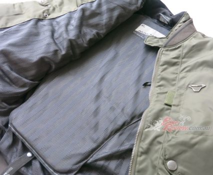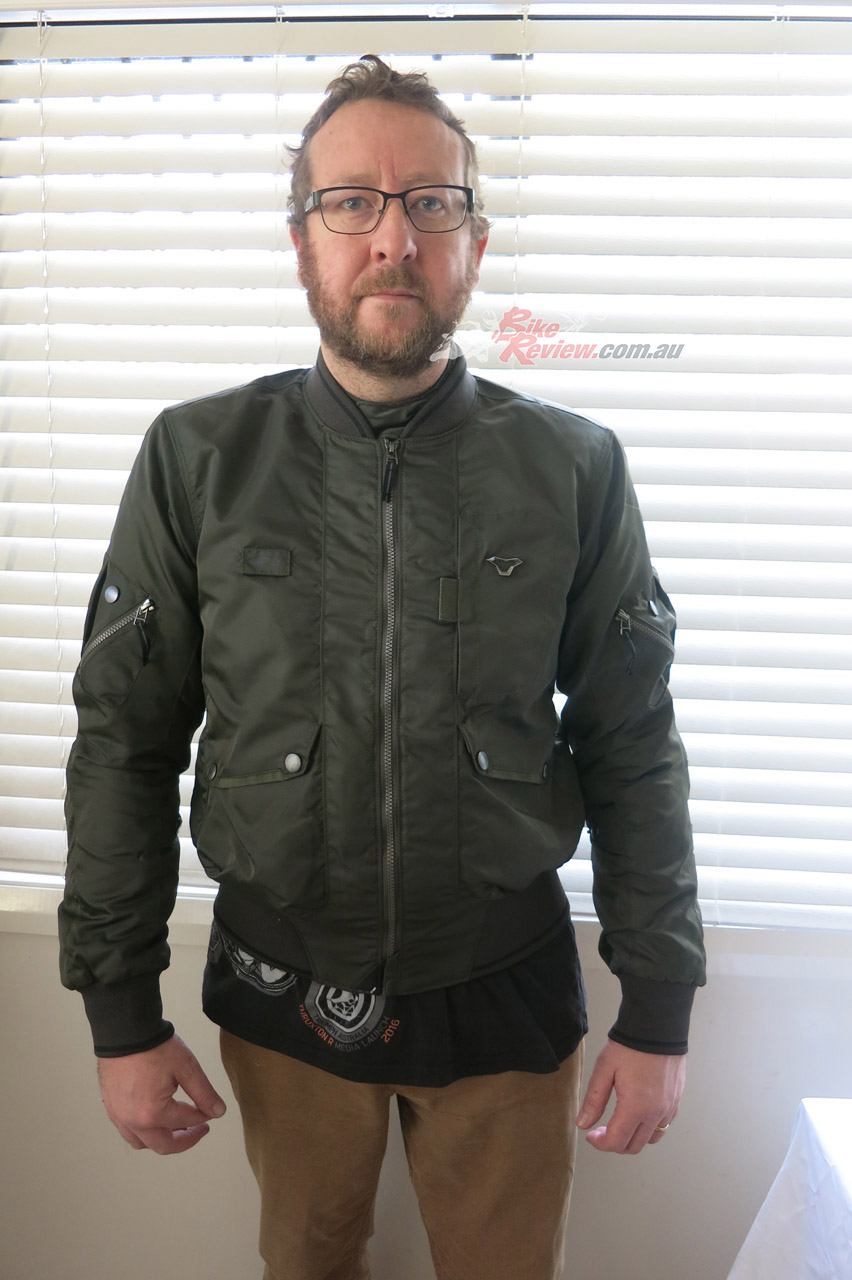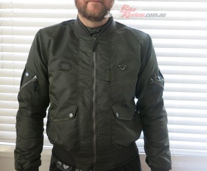 Macna Bastic Green bomber jacket $329.95 RRP is an all weather waterproof jacket that features CE armour, a glasses holder, phone pocket, airvents in the sleeves and back, fixed raintex membrane and a hoodie holder. Full review on the way soon…
