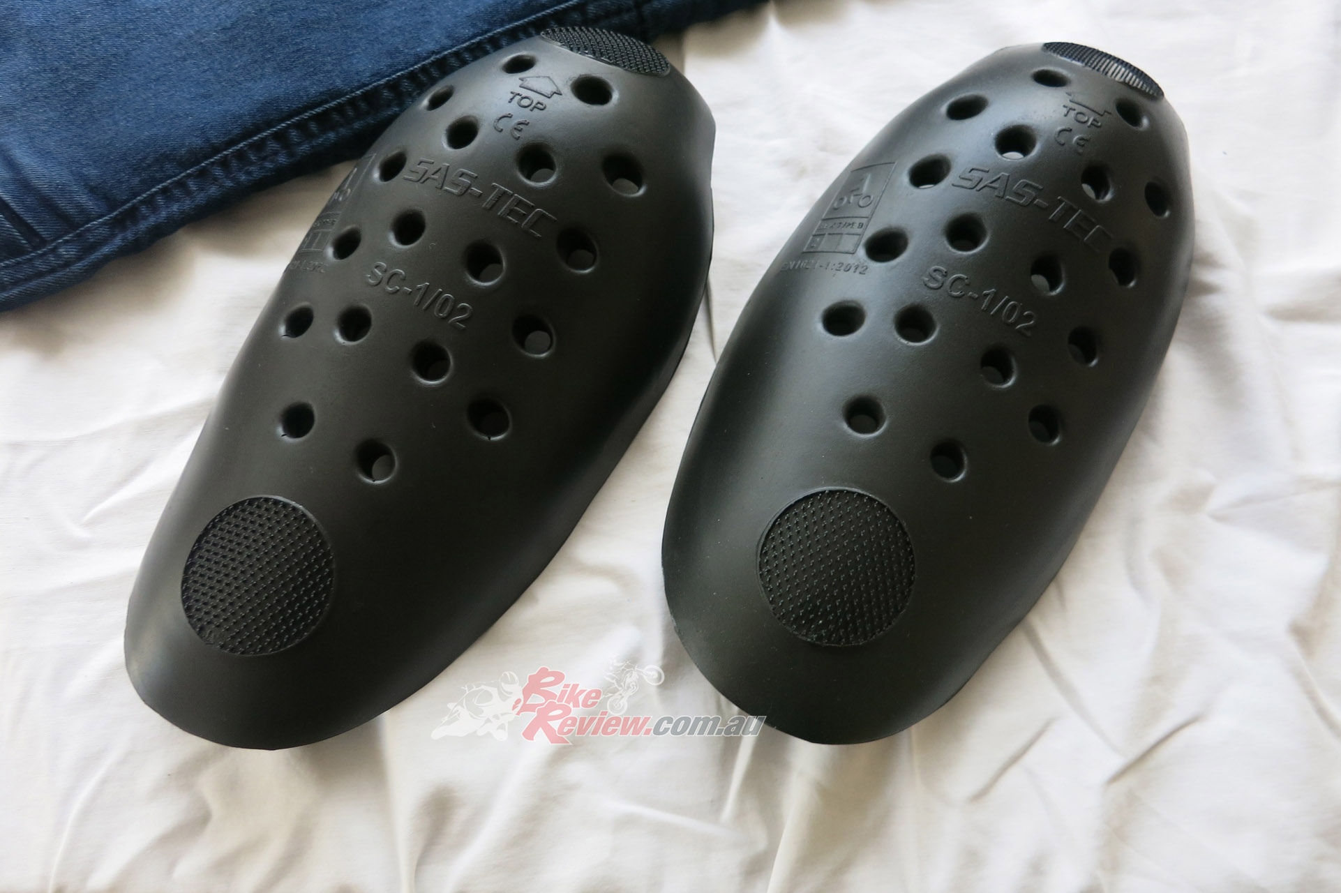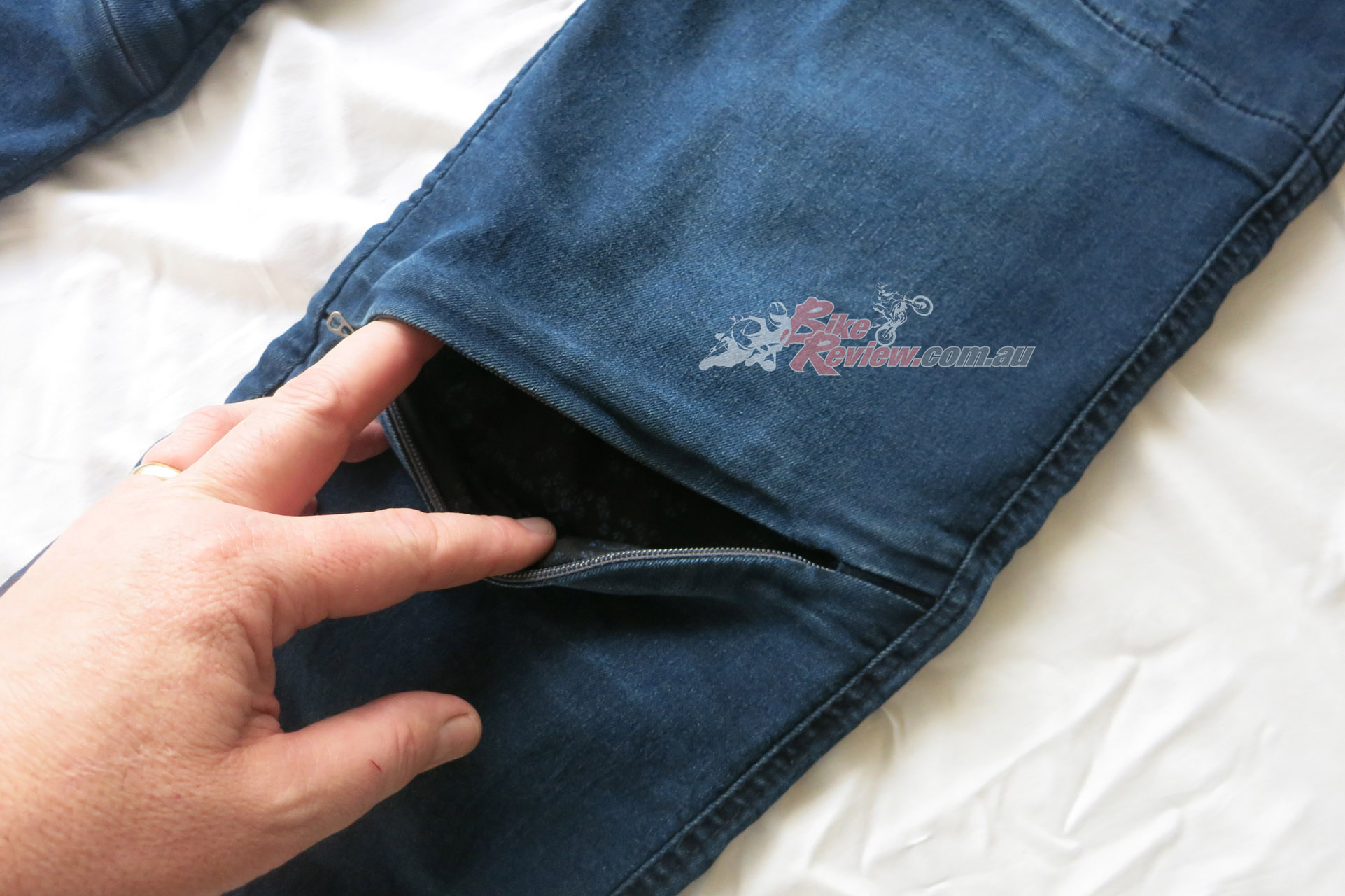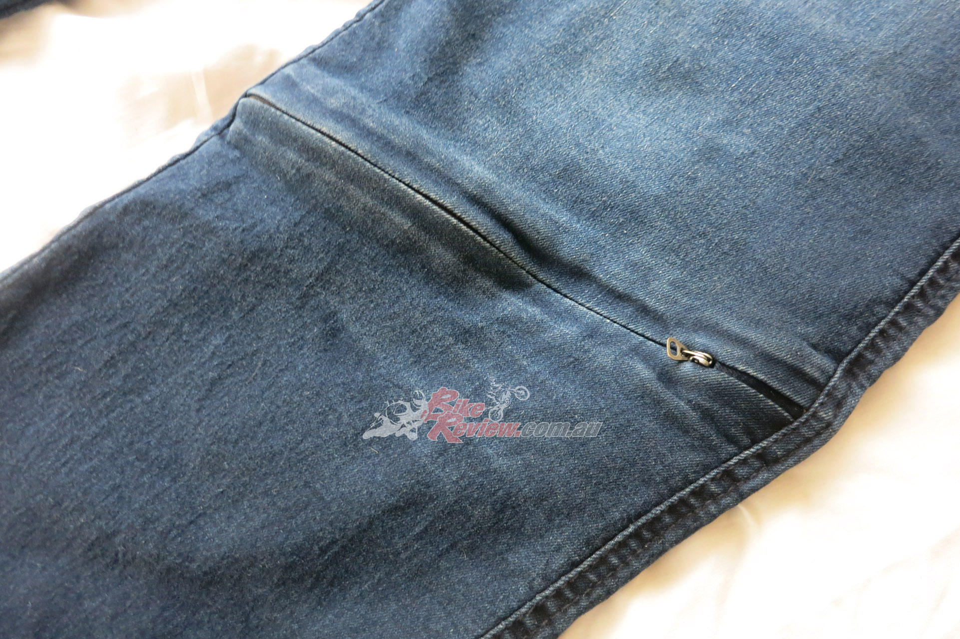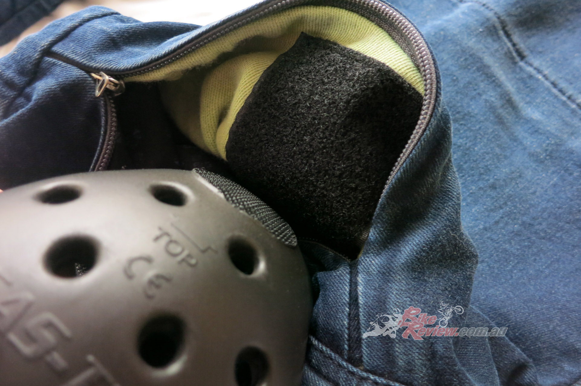 The Macna Stone jeans cost $299.95 RRP and feature stretch panels around the backside and knees for comfort, CE removable knee armour, CE hip preparation, jacket connector that velcro attaches to pants, aramid reinforcement at hips, knees and backside. Jeff is using these as is John Arens.