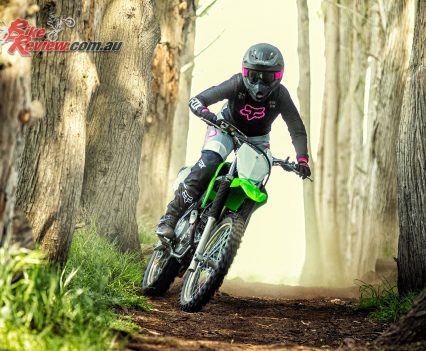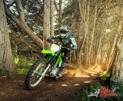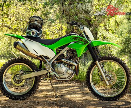 The new KLX230R offers a host of hard-nosed off-road advantages versus the more general dual-purpose KLX230, with a lightweight plastic fuel tank, aluminium swing-arm, 115kg overall weight, increased wheel travel (250mm) and more ground clearance (300mm).