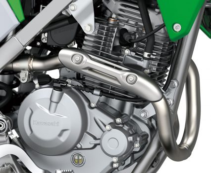 Designed from the start for off-road riding use, the all-new high-tensile steel perimeter frame offers the handling stability needed for trail riding. Extensive feedback from Kawasaki test riders helped achieve the balance between engine and frame that enables a wide range of riders to enjoy the KLX230R.