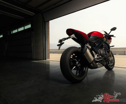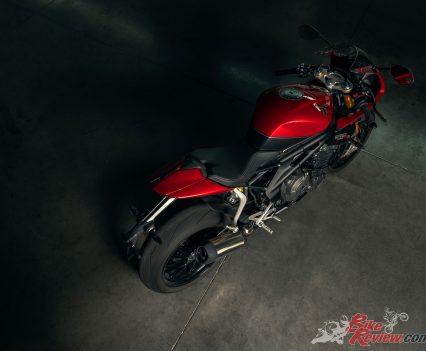 The new Speed Triple 1200 RR comes with Triumph’s two-year unlimited mileage warranty, which can be extended by one or two years. The Speed Triple 1200 RR will be available in Triumph dealers in Australia from December, Australian pricing has been confirmed at $32,490 rideaway for the Crystal White/Storm Grey and $32,890 rideaway for the Red Hopper/Storm Grey.