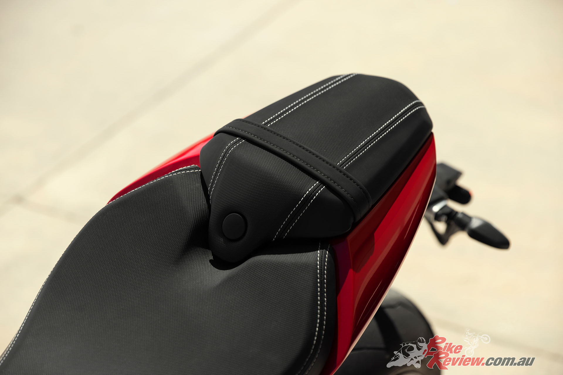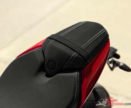 This new model comes in two stunning paint schemes – the Red Hopper and Storm Grey scheme which is a really rich and lustrous colour combination, or the equally striking Crystal White and Storm Grey option with premium gold detailing. Both schemes come, as standard, with a colour coded belly pan and colour coded seat cowl, which is supplied alongside the pillion seat.