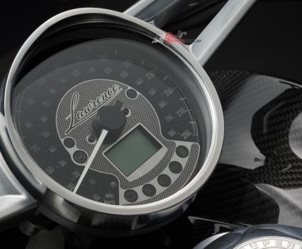 This new model represents a milestone for Brough Superior. Inspired by the mechanical architecture of the S.S.100, the Lawrence has unique curves that were only possible to be created by using carbon-fibre. The frame of the motorcycle is in Titanium, and the forks are a “Fior type” made out of aluminium.