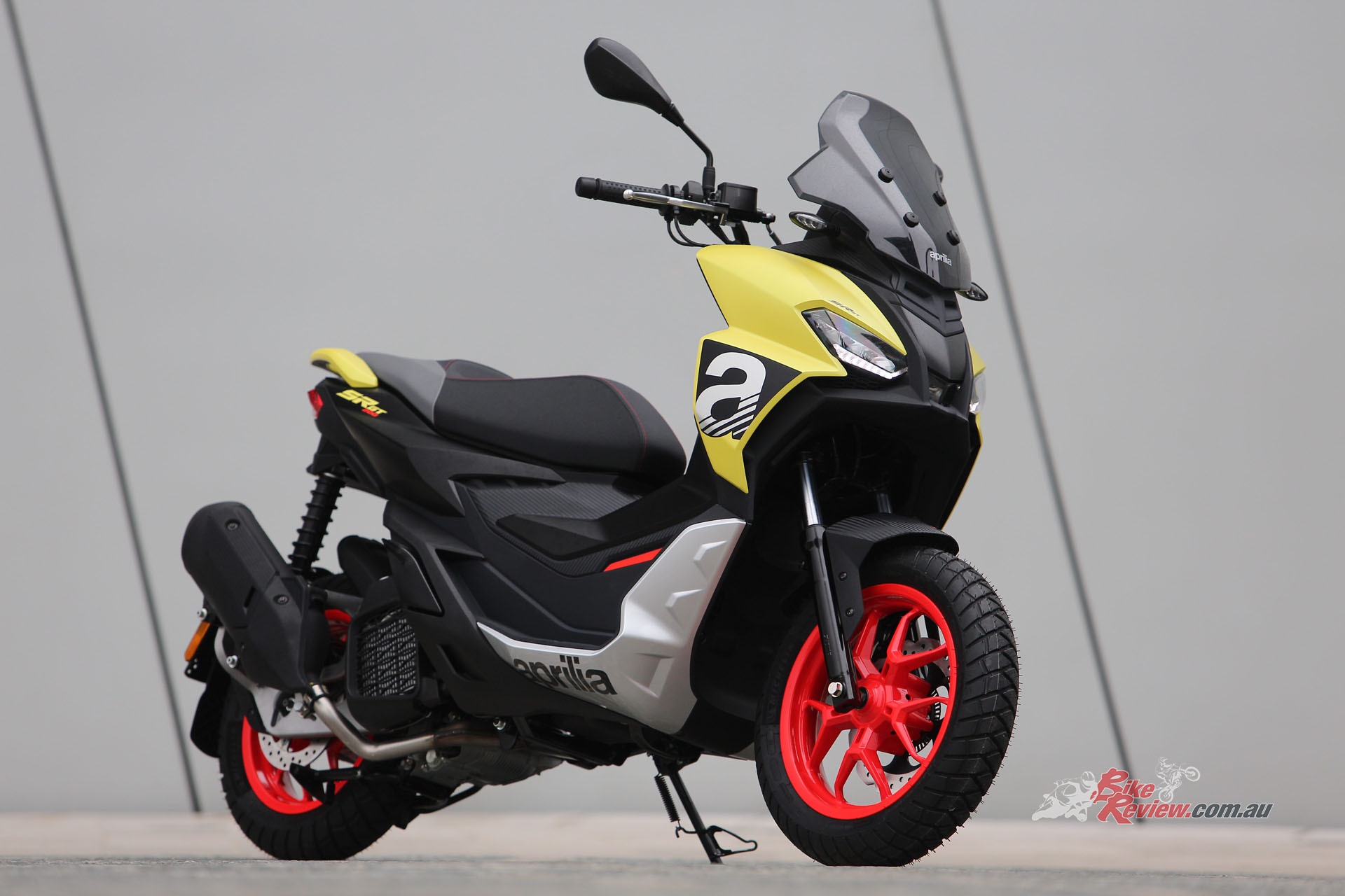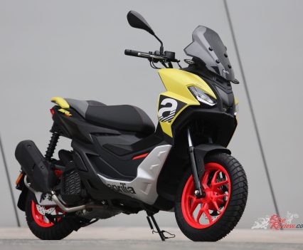 As well as a more classic version, Aprilia SR GT also offers a Sport trim, which boasts grittier, more sports-oriented graphics and finishes. Aprilia SR GT is available in three colours, Aprilia Black, Street Grey and Infinity Blue, each paired with silvery grey footpegs, sides and passenger grab handles. The wheels are black, the saddle black with grey stitching. The sport is available in Red Raceway and Street Gold. Australian pricing and availability is TBA…