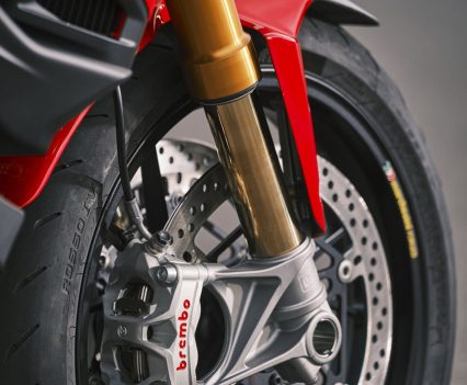 The braking system of the new V4 Pikes Peak is at the top of the segment and derives directly from the Panigale V4. At the front, the system includes 330mm diameter discs and Brembo Stylema monobloc calipers. At the rear, the system features a single 265 mm diameter disc with a Brembo floating caliper.