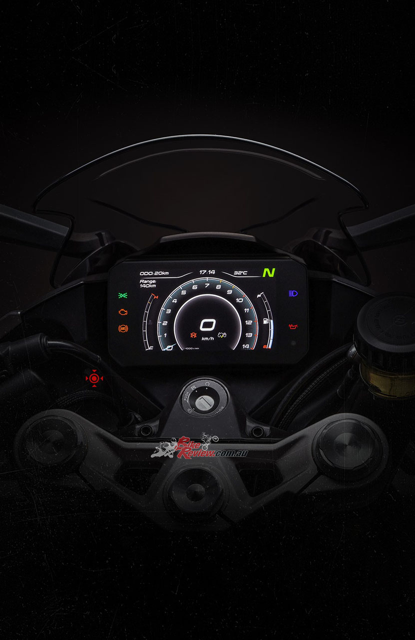 CFMOTO claim that the 450SR’s exquisite styling was meticulously perfected through extensive aerodynamic wind tunnel testing, which saw more than 20 design optimisations assessed over 30 hours of aero simulations.