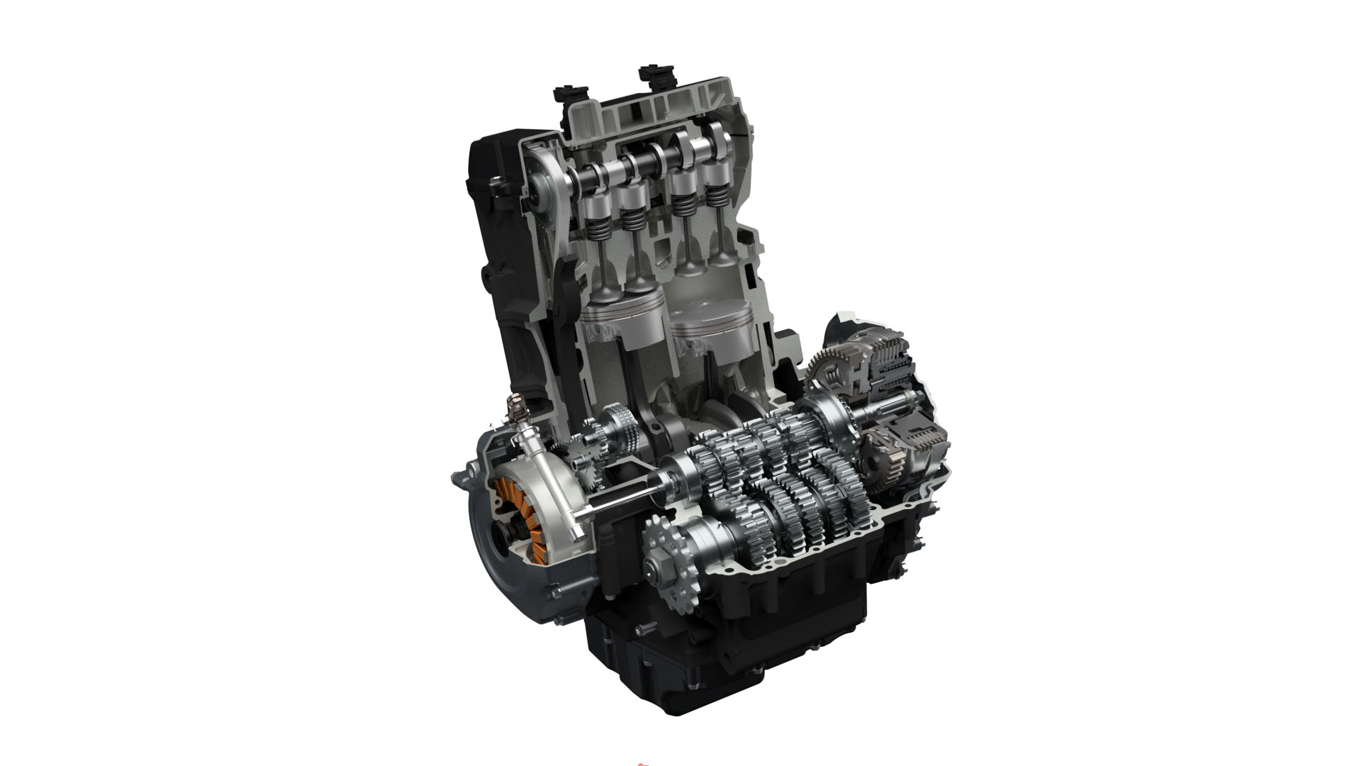- 776cc parallel twin DOHC engine with 270-degree crankshaft producing 61kW of power.