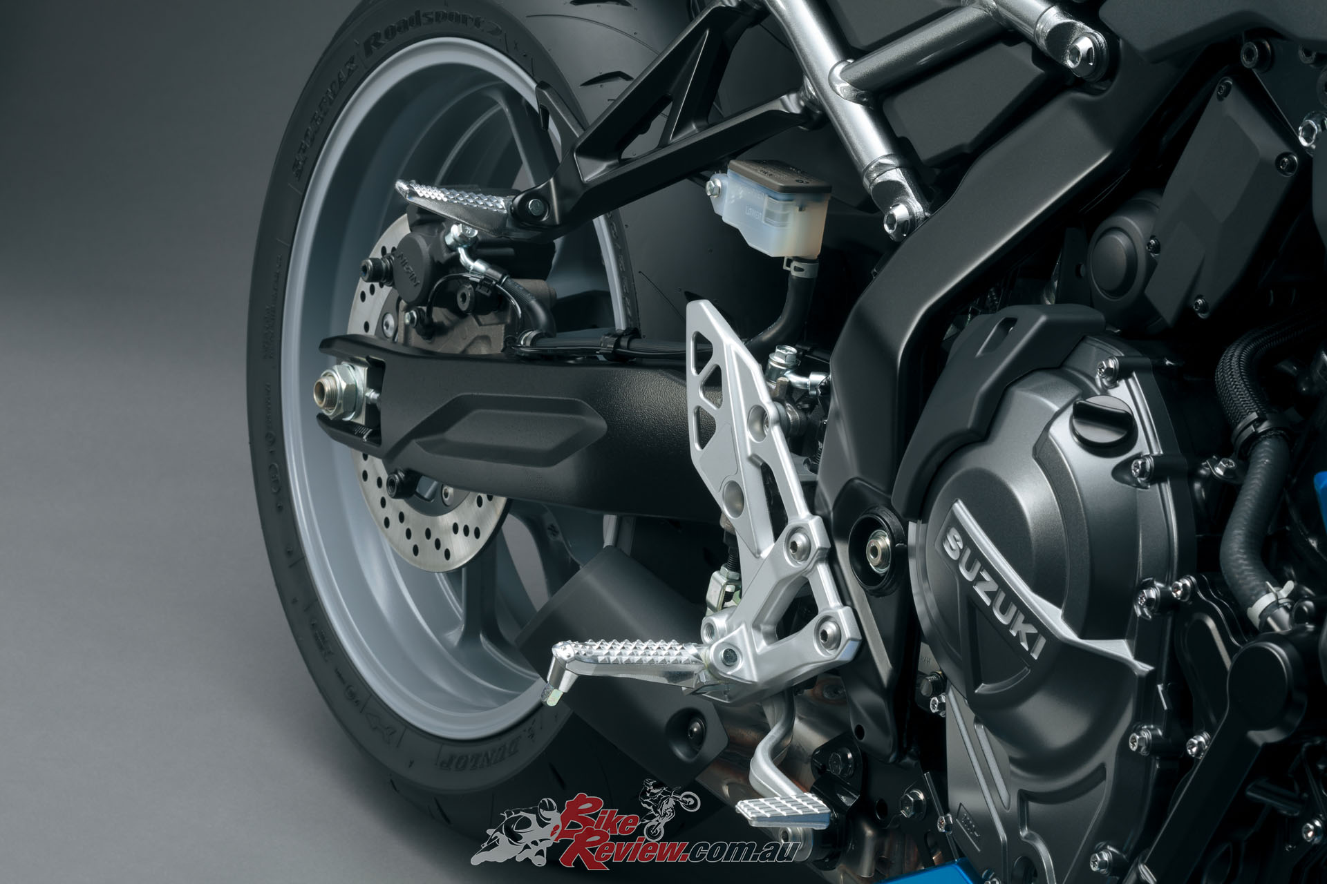- Uniquely shaped lightweight aluminium swingarm with enhanced torsional rigidity