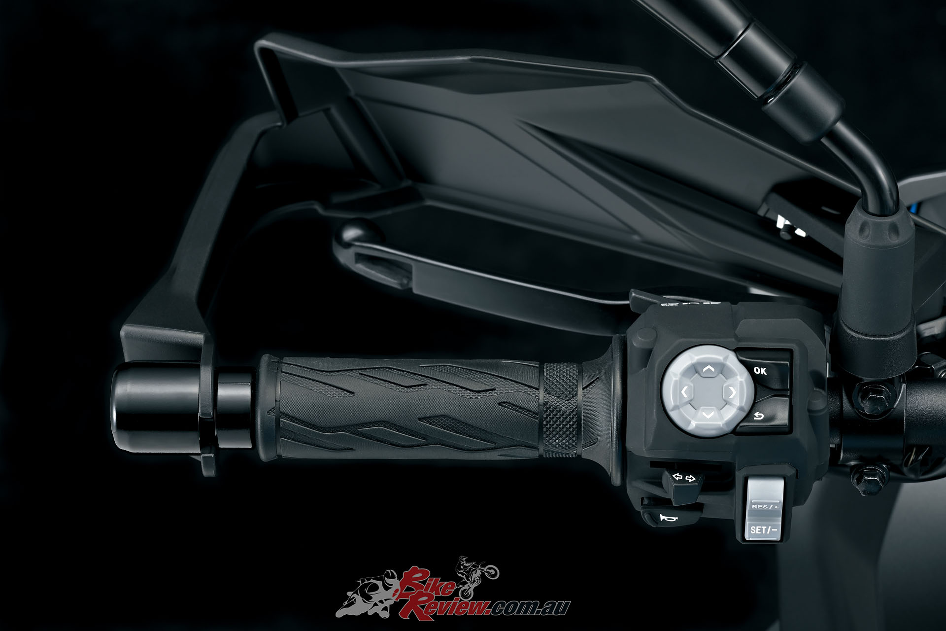 Cruise control is a convenient new system. Speed setting can easily be adjusted up or down using the (+/-) select switch on the left handlebar and confirm the current setting on the TFT LCD instrument screen by pressing the left handlebar switch’s RES button. Cruise Control can be set at speeds between 30km/h to 180km/h while riding above 2,000rpm in second gear or higher.
