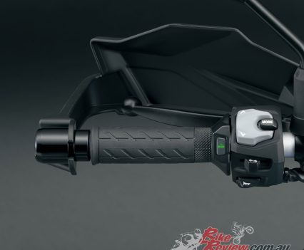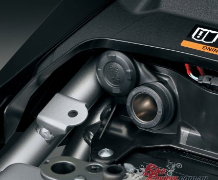 The V-STROM 800 looks on paper to be a great all-rounder and should be a nice road tourer here in OZ. We can’t wait to find out when we ride one… Tyres are Dunlop D614 110/80 – 19 and 150/70 – 17. Rake and Trail are reduced too.