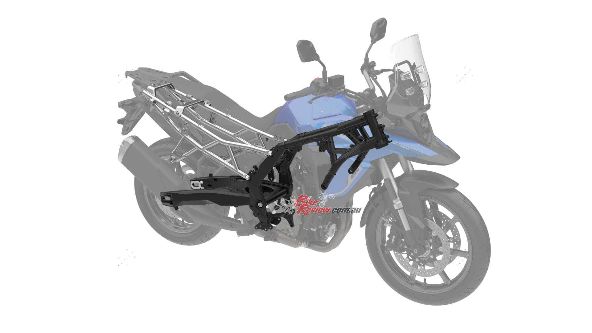 The V-STROM 800 represents a new entry into the mid-size adventure category. While the V-STROM 800DE (Dual Explorer) was specialised to excel at riding on gravel and other loose road surfaces, the V-STROM 800 evolves the chassis in the direction of providing maximum comfort and performance for long-distance touring and high-speed riding. Let’s look at some of the details released.