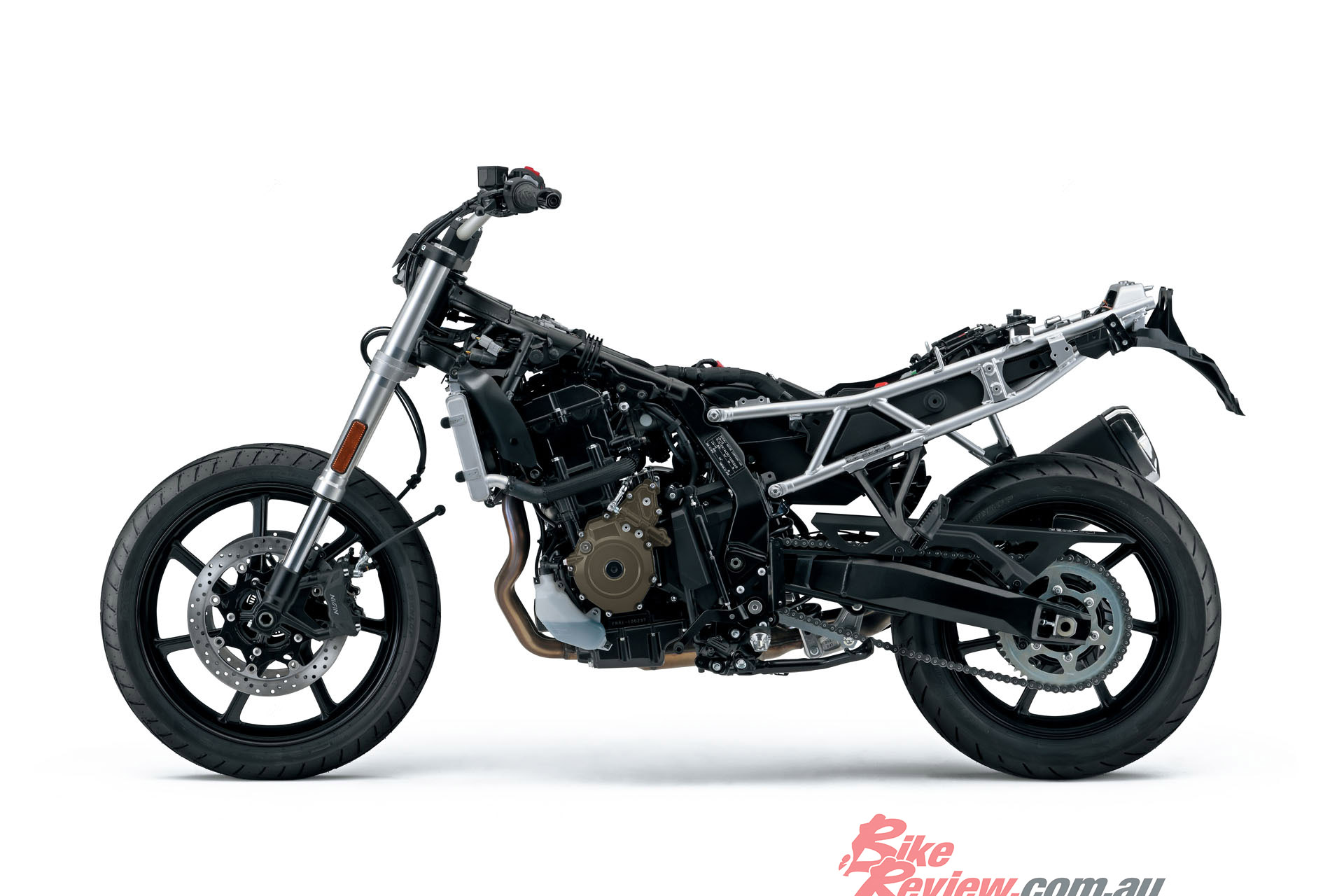 Brakes: Twin 310mm discs(f), Single 260mm disc (r), radial-mount Nissin front calipers, single rear.