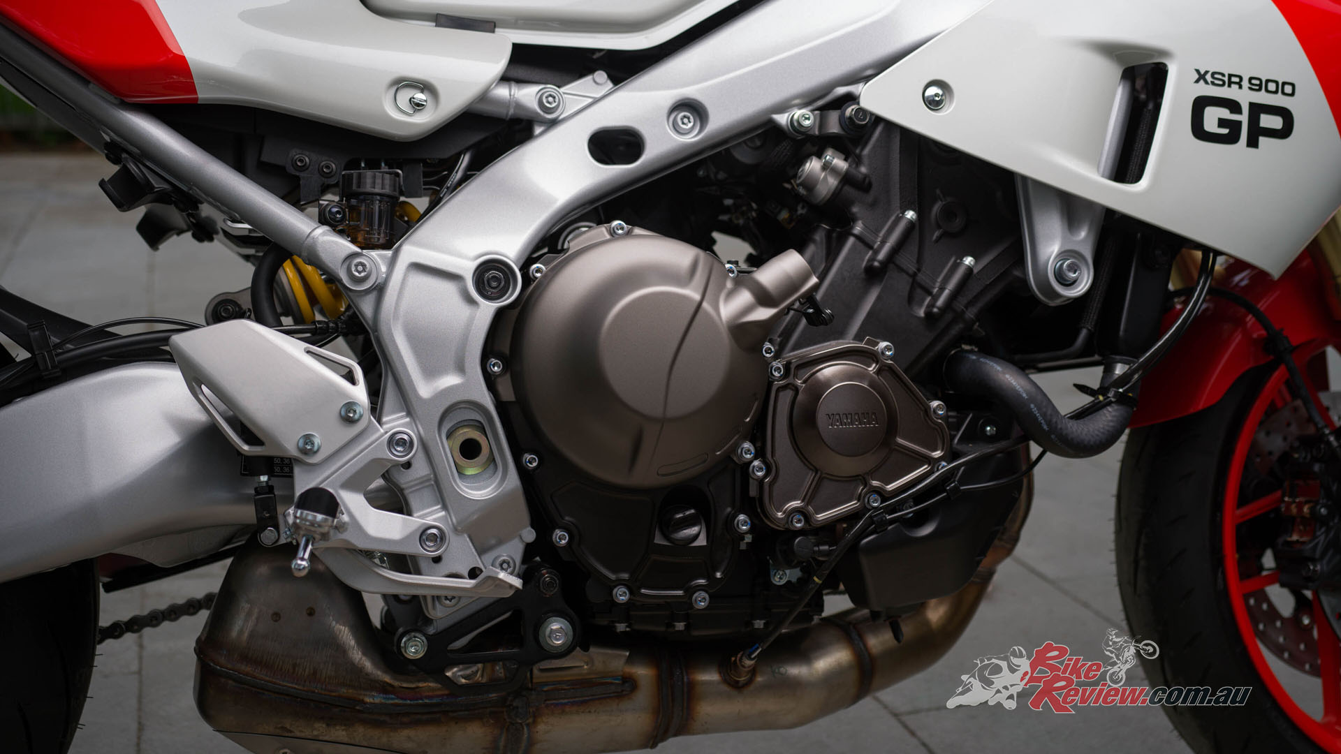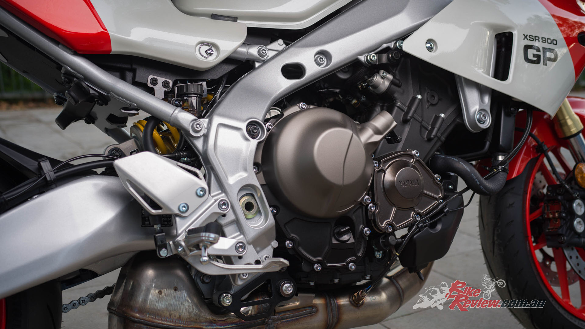 To accommodate the extra load on the front end of the machine as a result of the more forward riding position, the XSR900 GP areas surrounding the frame have been tuned to optimise stability in turning.