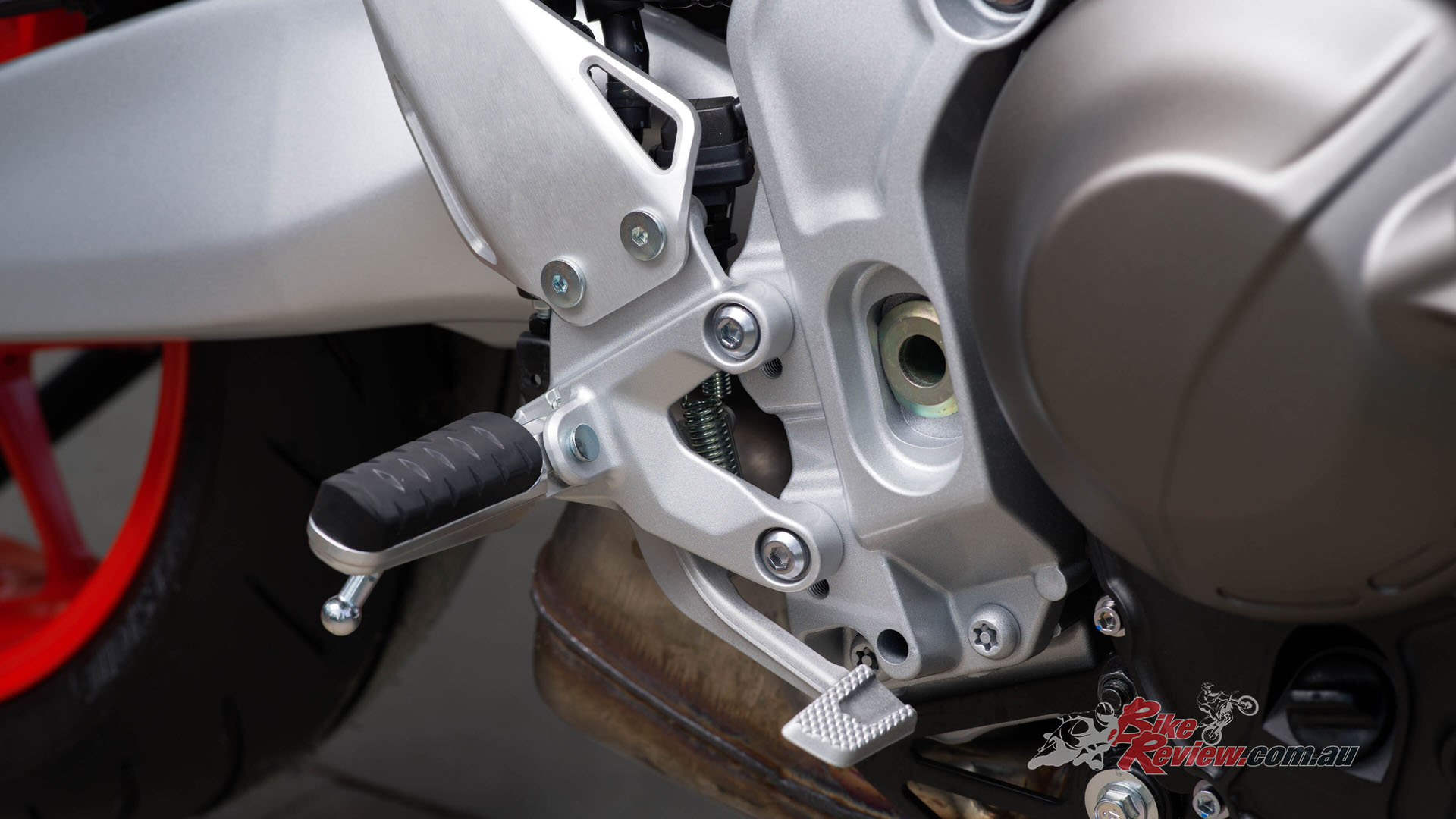 The aluminium diecast footrests are adjustable to two different positions but come out of the factory set at the upper position to highlight the sportier riding position.