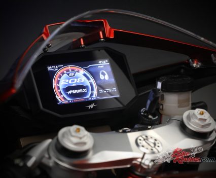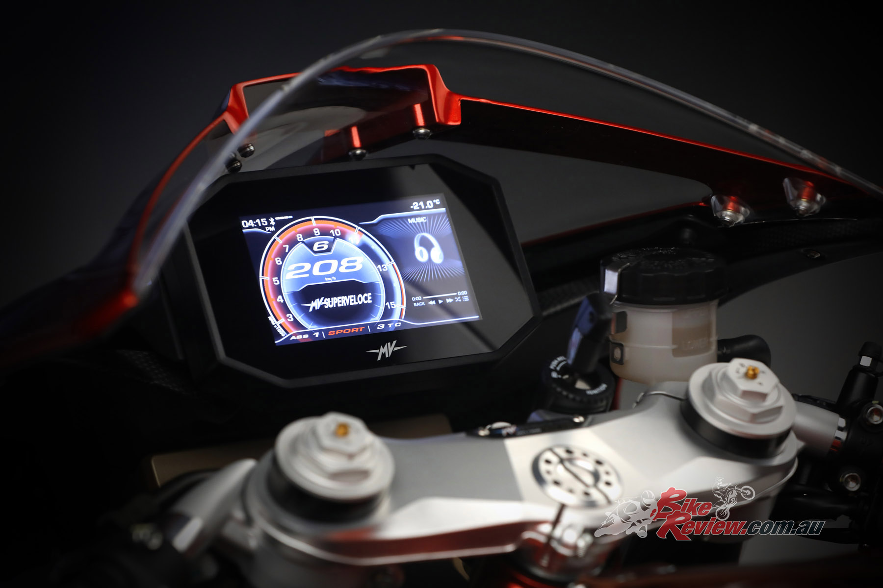 There are four engine map settings, including one that is widely customisable. The Superveloce 800 standard and Serie Oro includes the MV EAS 2.1 up and down electronic gearbox and traction control with eight different settings as well as deactivation option.