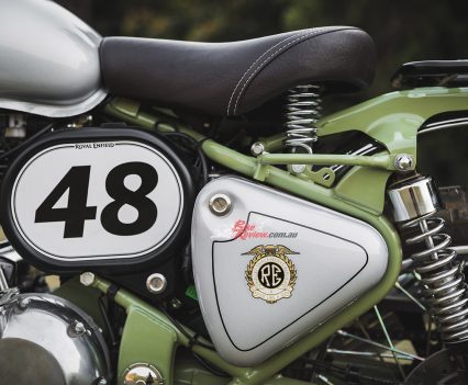Royal Enfield Australia & New Zealand presented the Bullet Trials Works Replica to the public at the Australian Motorcycle Festival. Here’s a gallery and quick video of the model, full specifications and more info yet to come. Pricing is set at $9,190 with two-years roadside assist. A limited and “one off” production for the 500c Bullet Trial is now available for pre-order, stock will be landing and ready for delivery to dealerships this month.
