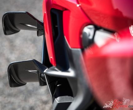 The new bike is equipped with the Öhlins Smart EC 2.0 with the event-based system that can vary the damping according to the rider’s riding style, together with biplane wings they increase the handling capabilities at high speeds.