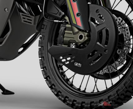 The two new models share numerous stylistic elements: the front end area and the sturdy handguard, for example, are both painted black. A side cover protect the radiator, which reveals a semicircle element in the centre. A cover protects the front braking system, with a large flap to ensure the discs the right dose of air flow; the skid plate underlines the off-road oriented use.