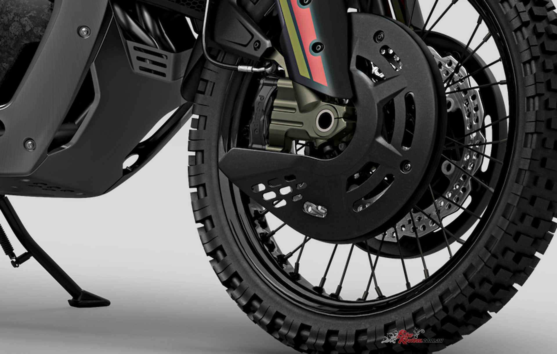 Brakes: Double floating disc. 320mm radial-type monobloc Brembo Stylema caliper with 4 pistons, single steel disc 265mm Brembo caliper with 2 pistons