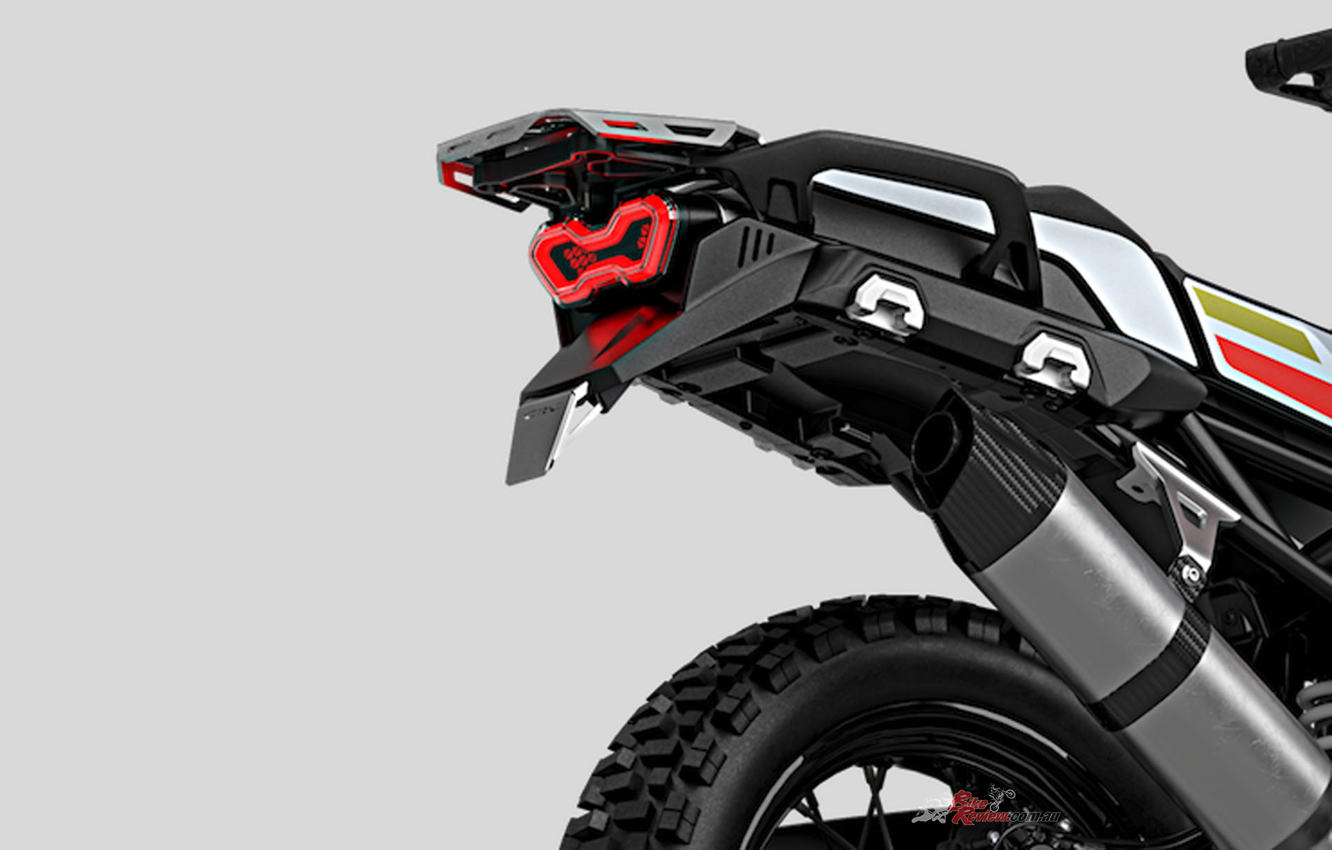 The instrumentation is a full suite of useful information as well as connectivity. It has a 7in full TFT panel, with Bluetooth connection to smartphones and Wi-Fi. The electrical switch cubes have been exclusively designed for this model: inspired by functionality and ergonomics criteria they allow the user to easily navigate amongst the numerous configurations available in the menus. In addition, a practical pannier fastening system, located in the tail area, comes with a retractable system: a smart solution that does not compromise the design of the bike.