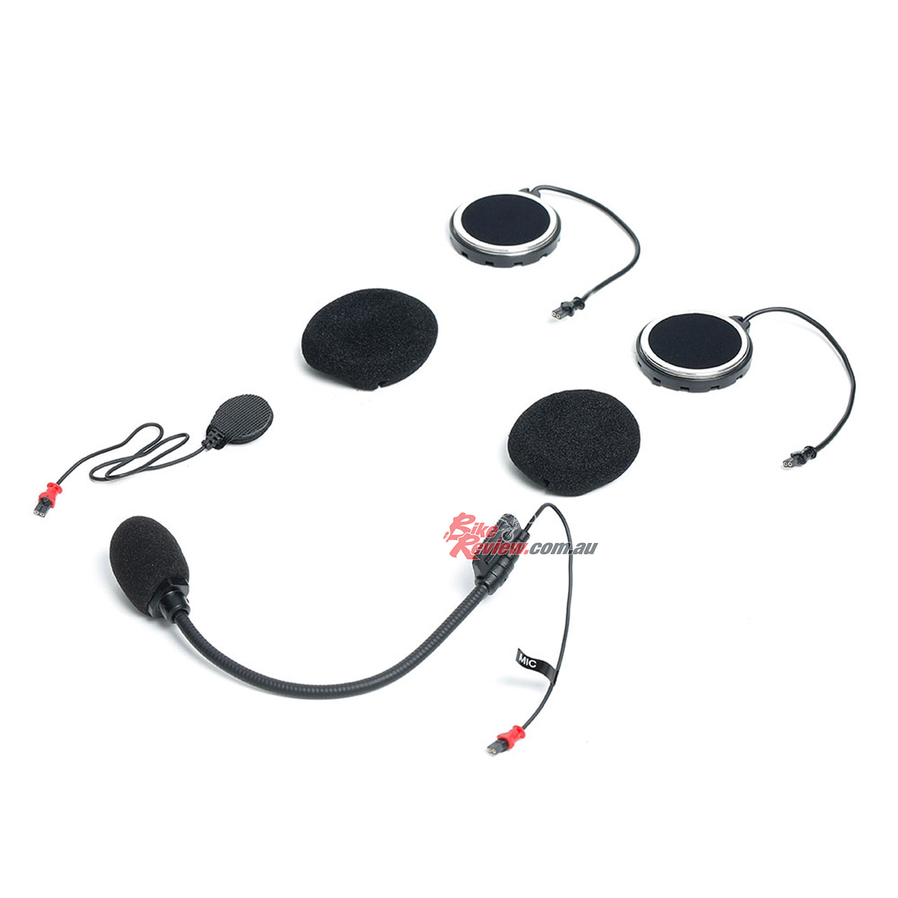 This versatile and aerodynamic system works as an intercom between rider and passenger, between up to four riders within a group, as a radio and of course as a mobile phone headset and microphone within your helmet.