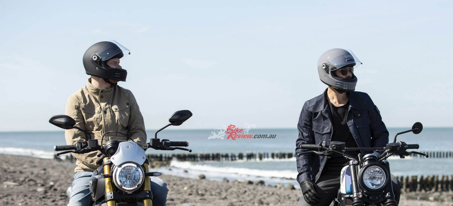 The new Shoei Glamster retro full face helmet model is officially in stores in AustraliA! Full info on the trick looking new lid is available on Shoei Helmets Australia website, which you can access here. The Glamster joins the J.O and Ex-Zero in Shoei’s retro range.