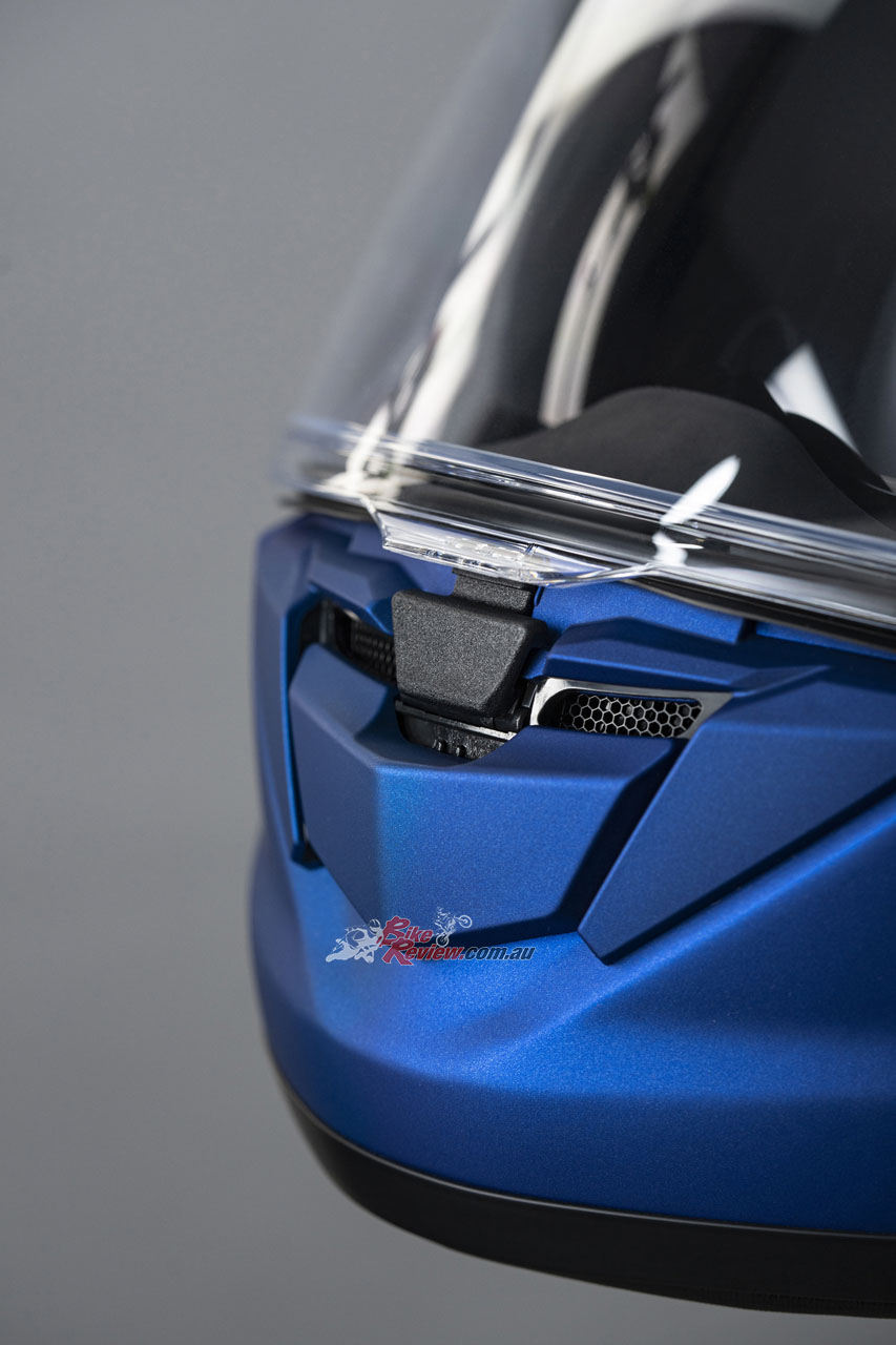 Rider feedback brought on the inclusion of insect mesh within the chin vents for those early morning and late afternoon rides on country roads, which will be greatly appreciated. Another fan request was to reduce the size of the stainless-steel micro-ratcheting chinstrap, which is now smaller and easy to operate, even with gloves.
