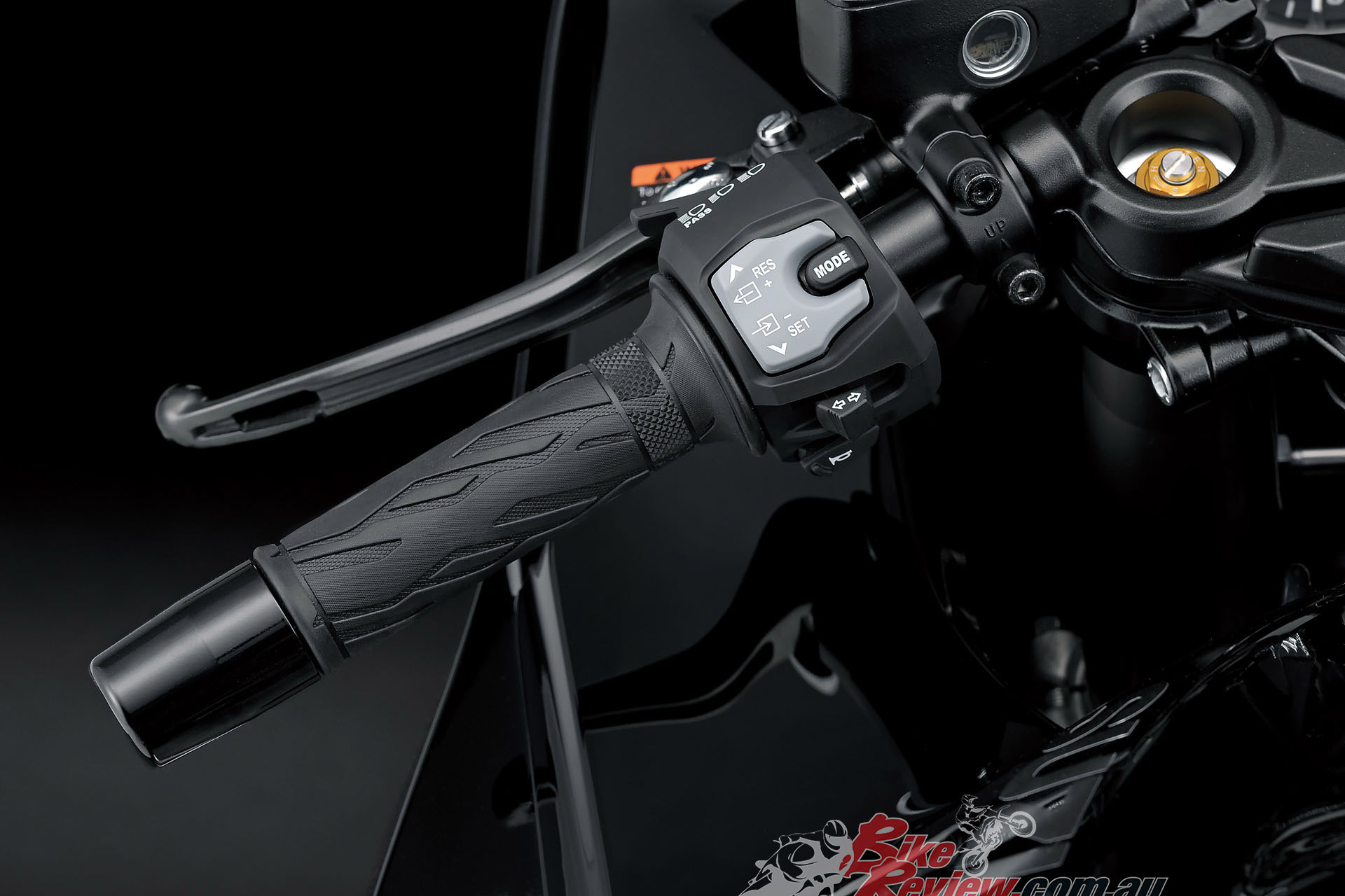 - Cruise Control reduces fatigue on long rides by allowing the user to maintain a set speed without operating the throttle. The speed can be easily adjusted upward or downward using the mode/set switch on the left handlebar and set from 31km/h to 200km/h while riding at 2,000 to 7,000 rpm in second gear or higher. The handy resume function re-engages the system and accelerates to the most recent speed setting after braking.