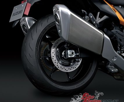 Suzuki’s electronic throttle control system made it possible to introduce the variety of new electronic control systems as the electronic control module (ECM) now controls the action of the throttle body as opposed to mechanical cable, providing a light, natural response with linear control, similar to that of conventional throttle operation. In conjunction with the introduction of this new throttle system, the size of the tapered throttle bodies changed from 44mm to 43mm and the overall intake pipe length, (including the intake pipe, throttle body and funnel), is extended by 12mm over the previous intake system. This contributes to producing greater power output at low-to-mid range engine speeds.
