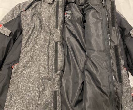 Inside there’s a removable 100g thermal layer. I’ve tried this once already on a freezing cold morning and it’s damn warm! The hood is completely removable as is the internal thermal layer (which can be worn on its own, showcasing the tidy leather RJAYS logo). Theres plenty of internal and external pockets for any and all electronics. The waist also features a zipper for connecting matching pants.