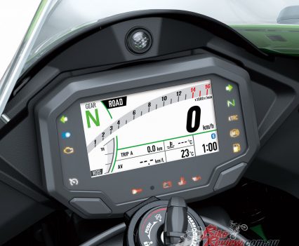 The new ZX-10R and ZX-10RR have undergone an array of updates and refinements, with the ZX-10R now having cruise control, optional heated grips, a taller screen and repositioned handlebars and all-new aerodynamics. Geometry has been modified and there is a new TFT dash with BT connectivity.