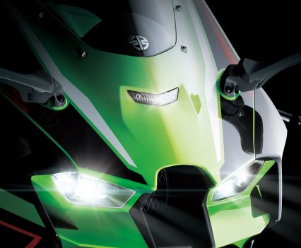 Designed with advanced aerodynamics, a new upper cowl with built-in winglets and compact headlights both improves aerodynamic performance and introduces next-generation Ninja styling. Furthermore, chassis geometry has been updated in order to improve upon the Ninja ZX-10R’s cornering performance and nimble handling. Suspension settings have been optimised to match. The swingarm pivot is 1mm lower, which enables better rear suspension action during corner exits.