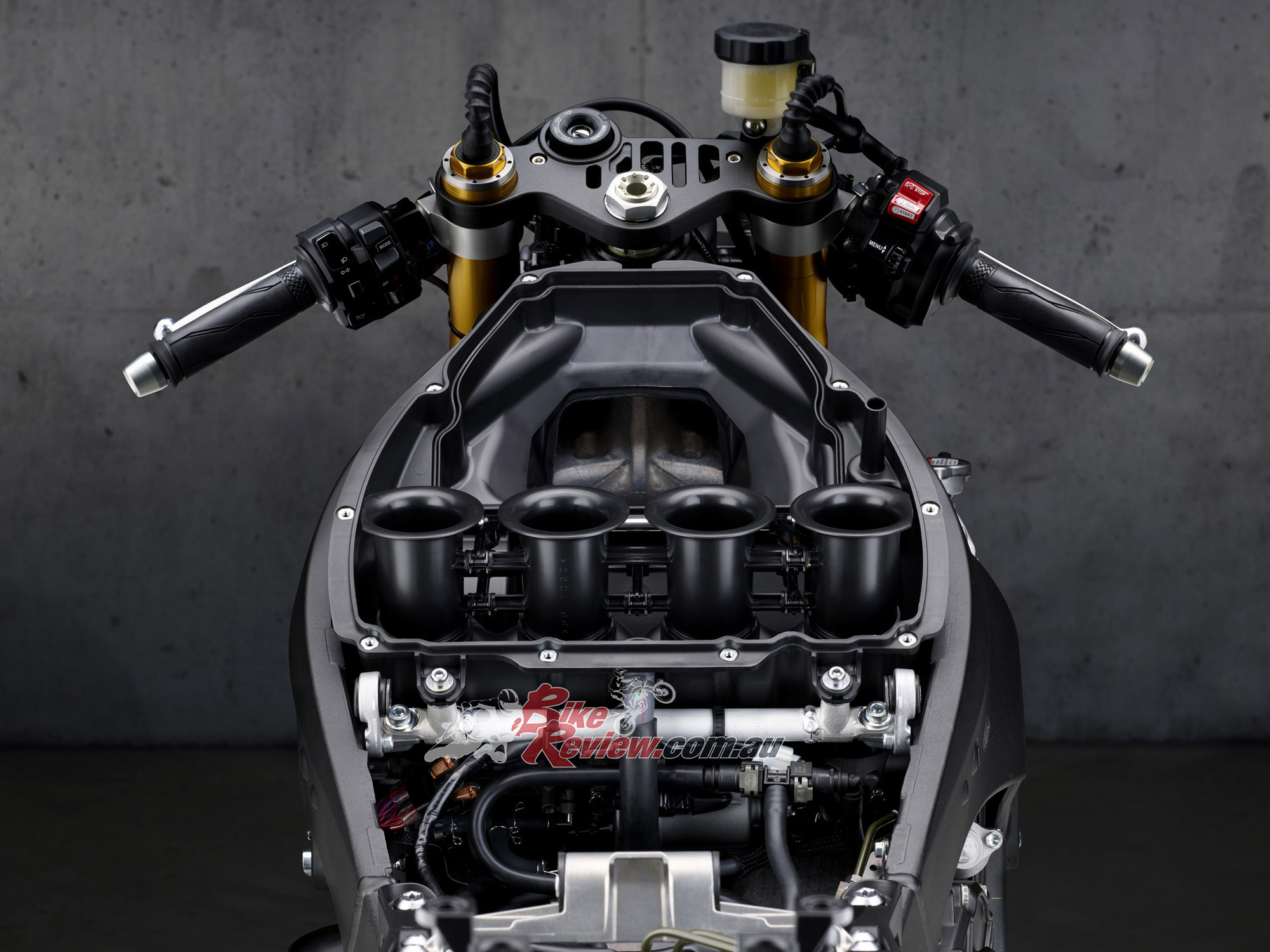 An all-new Accelerator Position Sensor with Grip (APSG) ride-by-wire system featuring Yamaha’s Chip Controlled Throttle (YCC-T) eliminates throttle cables and reduces weight while providing smoother throttle operation.