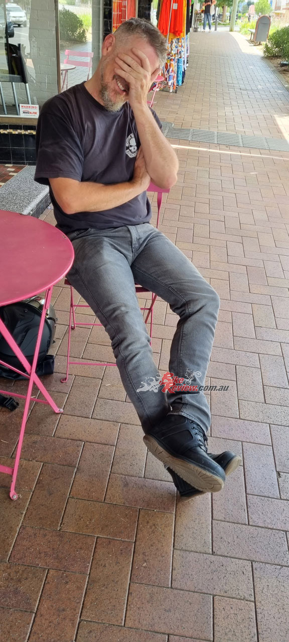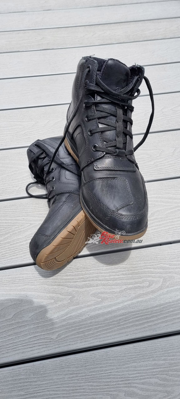 Now, as always, there is a “but”. On one ride out it started raining when I got off the bike and went into a shop (like it has done for most of summer up here in Qld this year). When I got back to the bike and wiped the water off the seat, I hopped back on and took off. When I got to the first intersection and went for the brake, I noticed the boot slipped around. It turns out the sole tread pattern is so slight that once it gets wet, it doesn’t have a whole lot of grip. Not really a big enough problem to make it feel unsafe or a deal breaker, but just an observation to keep aware of. Other than that, they kept my feet dry all the way back, so there’s another box ticked.