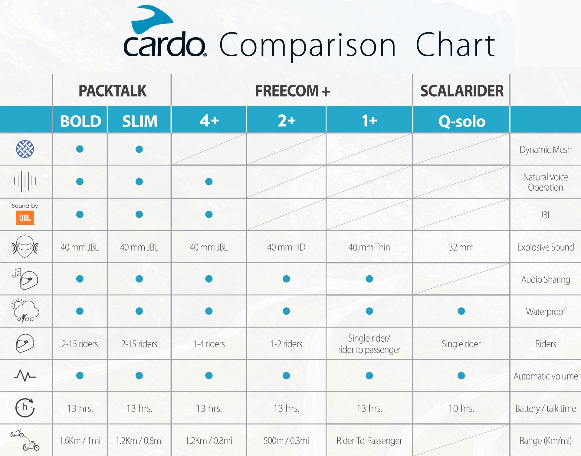 Overall, we rate this product very highly and it has made a positive impact on our riding experience either when riding solo or in groups and I highly recommend the Cardo system.