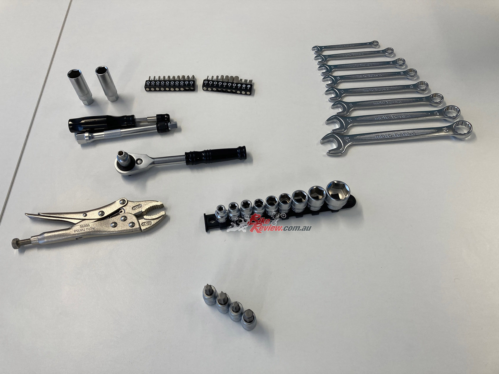 When I was a young apprentice mechanic at Len Willing M/C and Parry’s Kawasaki, tools were my life. Those years and into my earlier racing years in the mid 1990s on the Proddies and 600s, I reckon I spent just as much time cleaning and organising my toolbox and tools as I did preparing my bikes! I really love tools to this day and appreciate quality and a good design. One thing I didn’t have in my kit, and just about the only thing missing, is a good tool bag, so now I do.