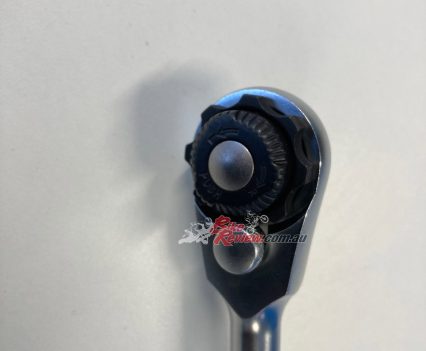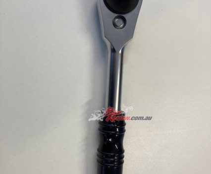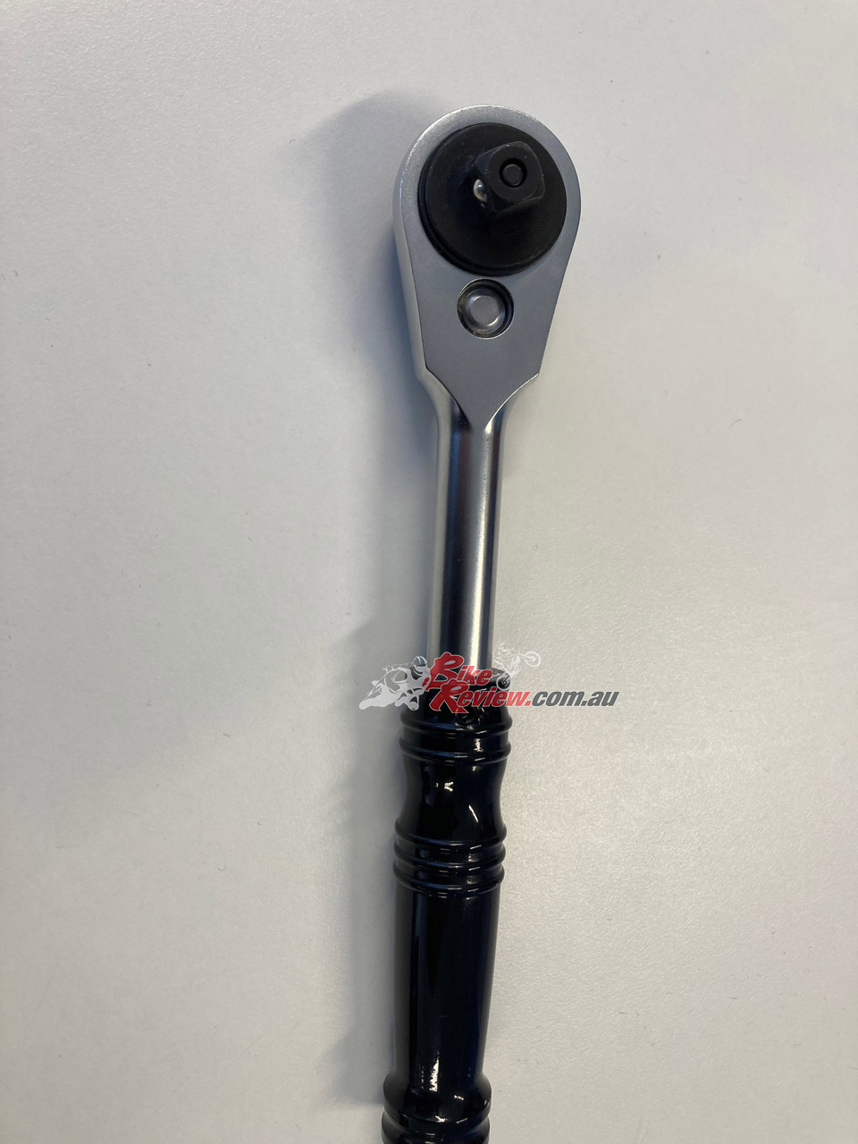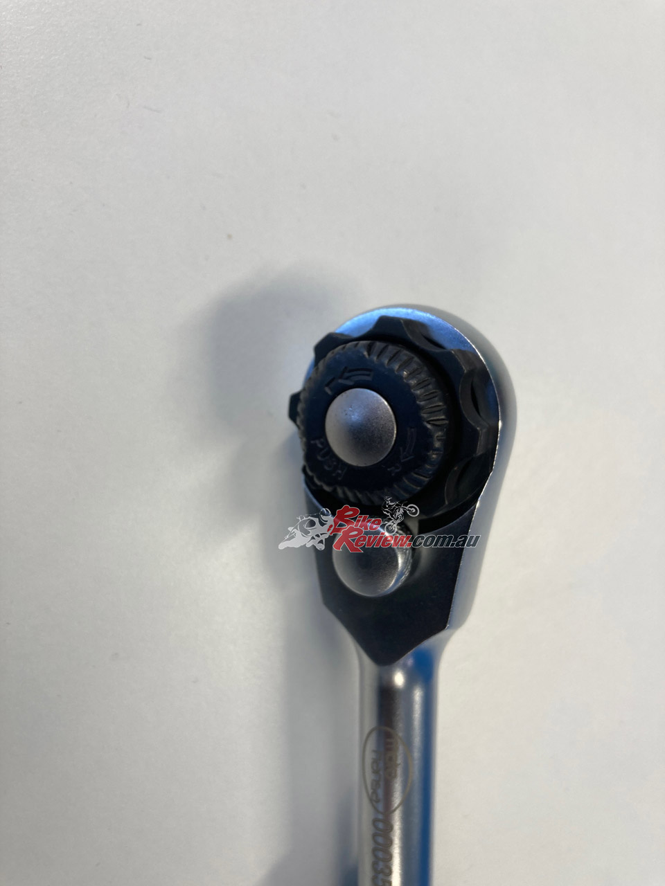 The ratchet has a solid feel yet a comfortable handle, and is fully extendable too, which is trick, while the head is solid but has a slim profile housing the pawl and round gear and the ball lock on the square head is solid and locks and unlocks via a central button thumb push, you can’t pop sockets on and off without pushing the button. This stops you losing sockets in the bush! Scrolling manually with thumb and forefinger is smooth but a bit solid, while there is a nifty pin lock mechanism than turns the ratchet into a solid tool for when you do not want a ratchet action.