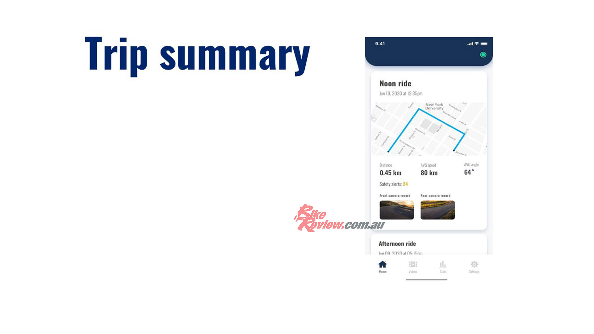 You can download and watch any of your trips via the app. This is fantastic for insurance purposes, other legal reasons, or just for fun and bike reviews! Have two cameras ensures every angle is covered as well. A great system.