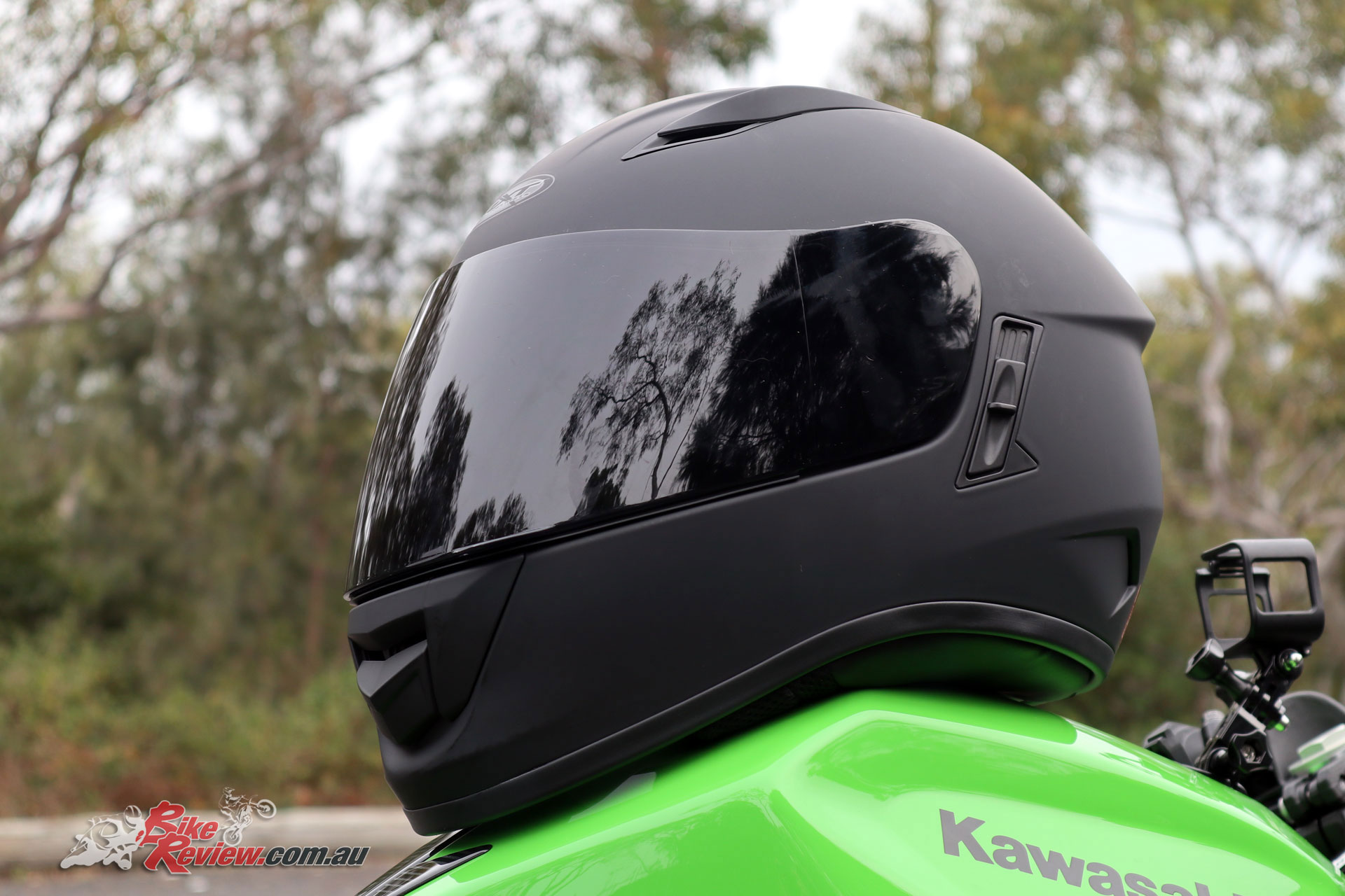 Replacement visors are also affordable, with a dark tint visor tested on the helmet we received, while an internal drop down visor ensures you can handle direct sunlight into your eyes without a tinted visor. That’s a big convenience feature for me on it’s own and one generally worth considering.