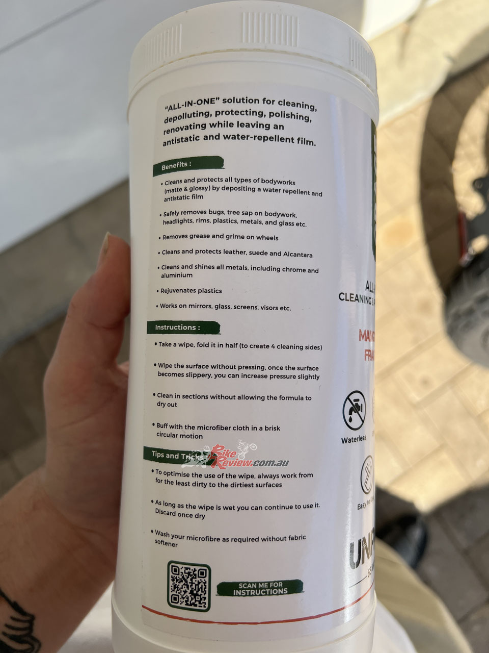 You can pick up the wipes and microfibre cloth combo off the UNPASS Australian website now for just $39.90. The container comes with 65 wipes so you’re absolutely saving time and effort over going to a carwash every time your bike is dirty.