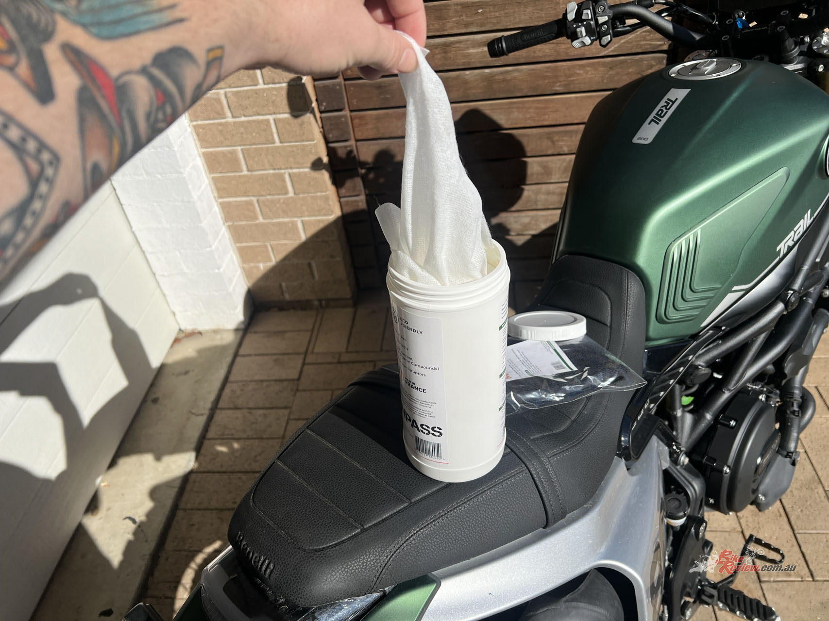 My Benelli Leoncino 800 Trail is filthy, I’ve been riding it in the rain with some mild off-roading so I decided to put the ORAGE wipes to a proper torture test without even showering the Leoncino with the hose. It’s safe to say I’m impressed with the result.