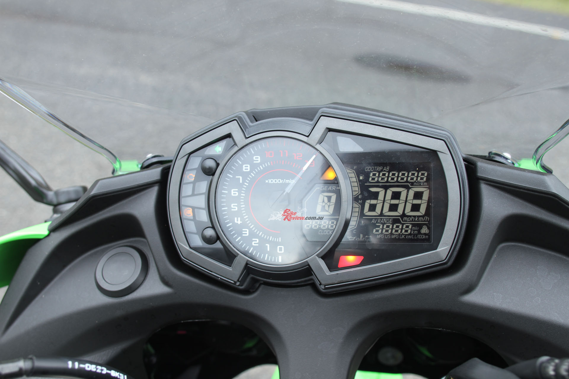 Styling is spot on, harkening to the ZX-10R and ZX-6R, with the KRT Edition an irresistible option if I was buying. An adjustable screen, adjustable levers, integrated indicators and simple dash all delivered above my expectations.