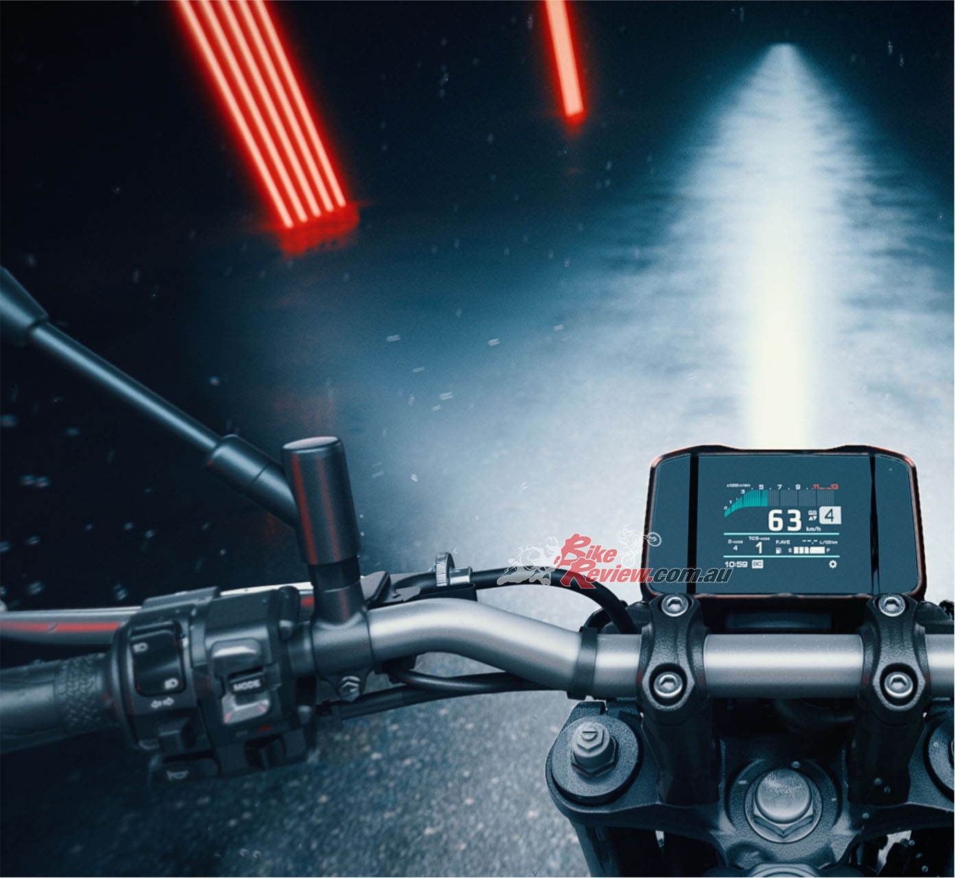 Rider assistance is controlled through this tiny box with a big brain, completely controllable through the TFT dash.