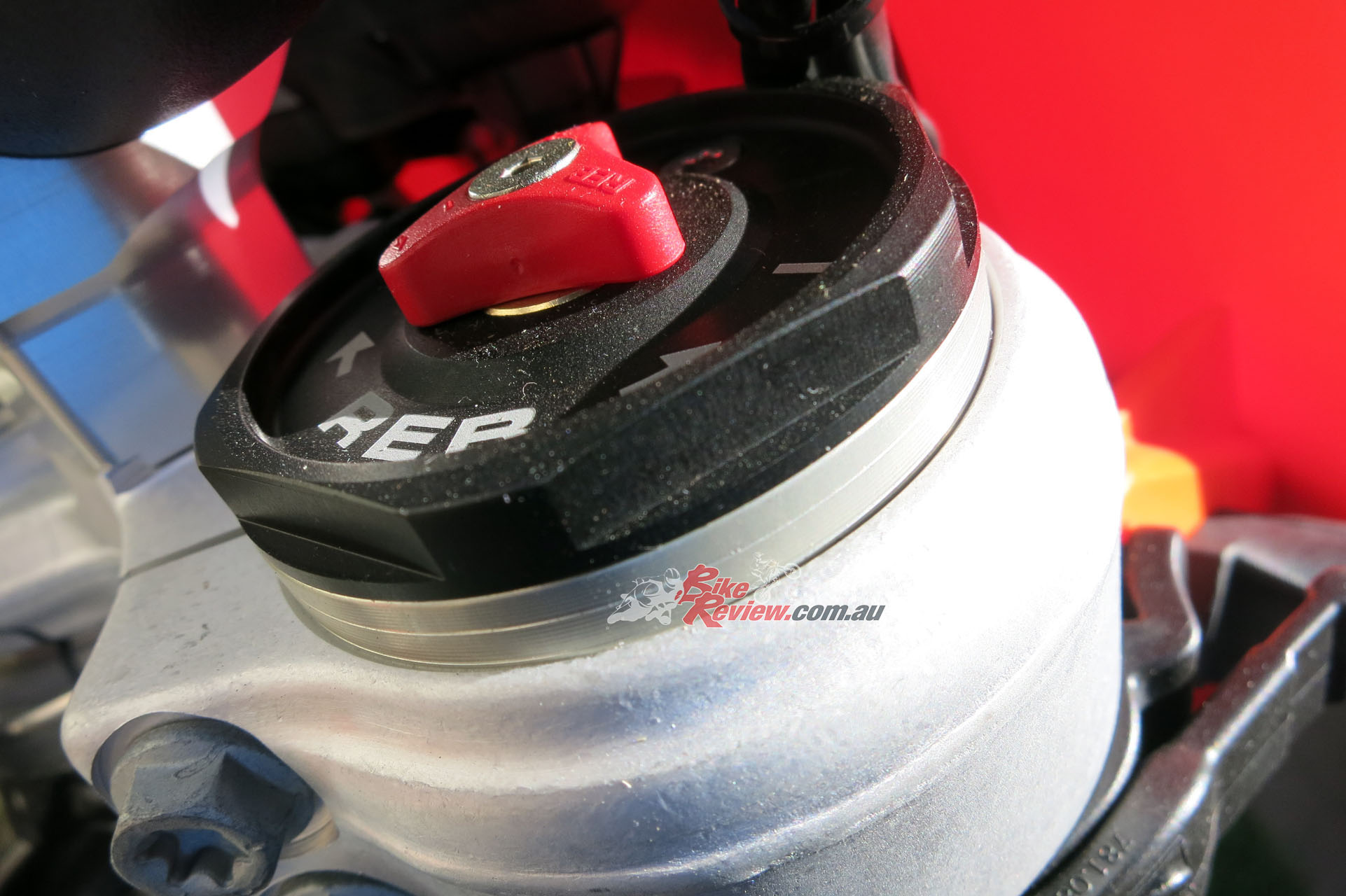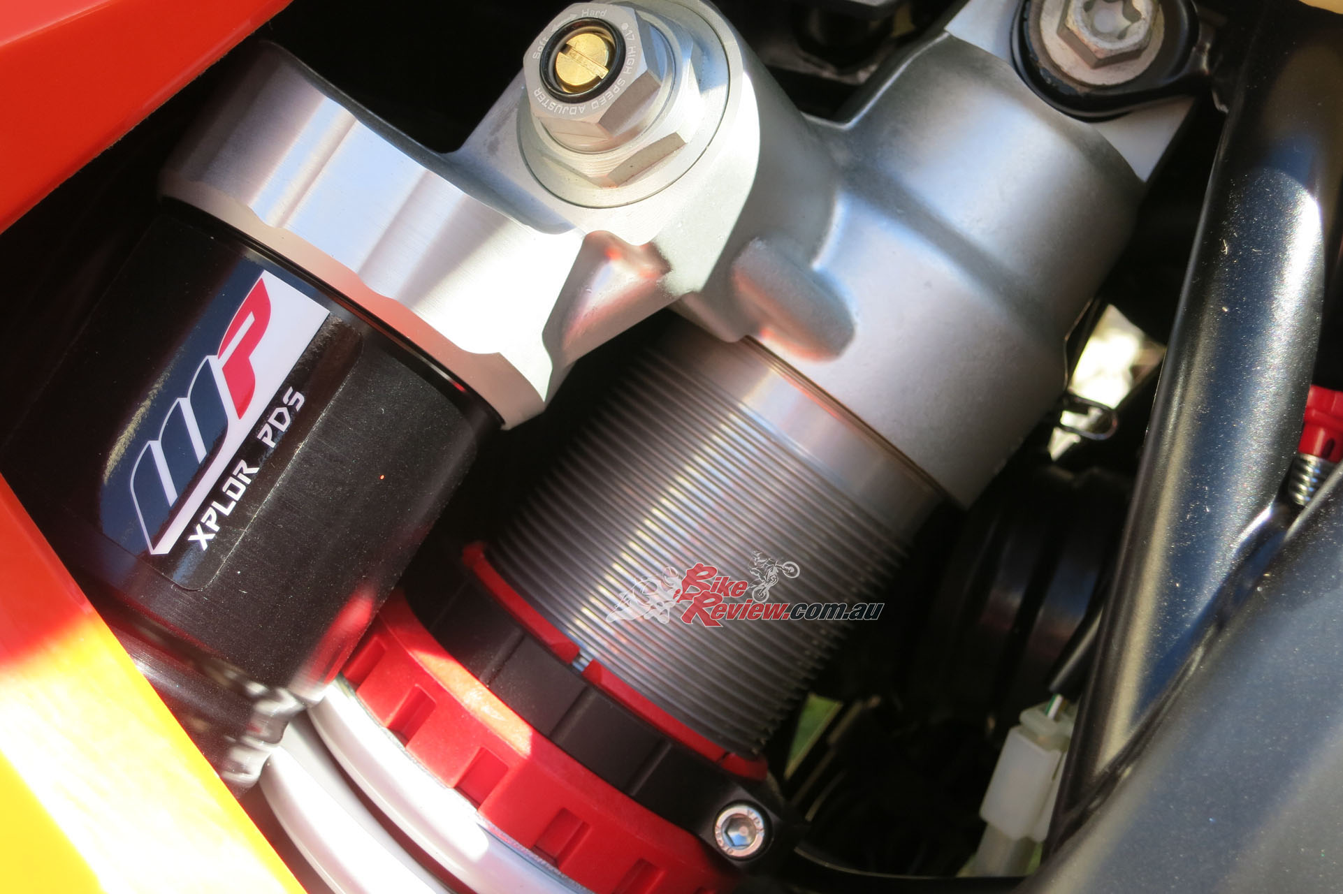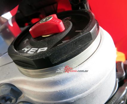 The bike had recently been fitted with a sump guard, anti-vibration handlebar mounts, thermo fan and traction control. I can’t really comment too much on the reduced vibration through the ‘bars as I didn’t ride the bike beforehand, but there was hardly any ‘bar vibration.