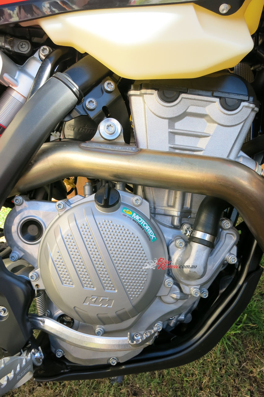 We had an older KTM 450 and a Husky 450 with us on the ride and at no time did I find the KTM 350 EXC-F ever lacking, in fact the super smooth fuel injected motor is a ripper and has loads of smooth predictable power, which is available right through the rev-range.